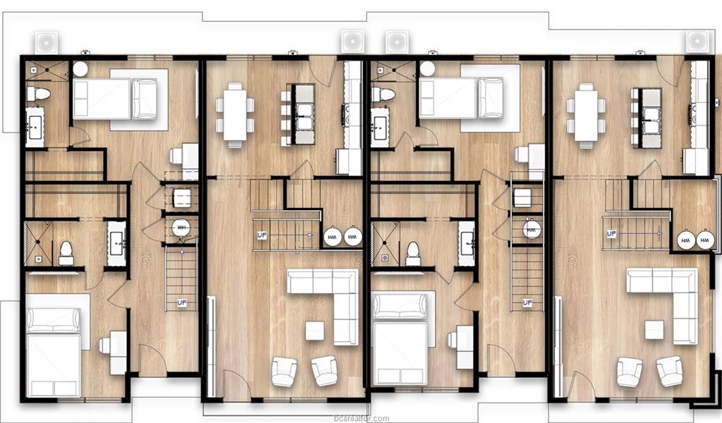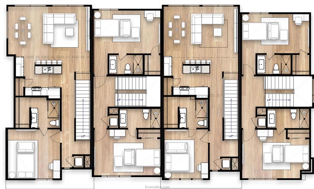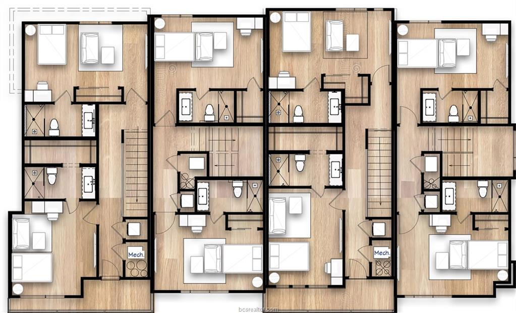 FALL 2025 PRE-LEASE! Come home to the newest, luxury townhome community in Bryan, THE MODS! The features of this gorgeous 4 bedroom 4 bathroom, 3-story townhome are endless! Available for move in on August 1st, this townhome comes FULLY FURNISHED even down to the art work on the walls! Combo washer and dryers are located on each floor! The giant end-unit window offers both beauty and functionality, bringing the outside in while enhancing the overall ambiance of the interior and flooding the space with natural light. The complex boasts The Mod Lodge, Luxury Pool and The Garden. Plenty of space to hang out with your friends and play corn hole, watch football games and study! Close to Blinn and on the TAMU Shuttle. Pet-Friendly. Internet Service Included.