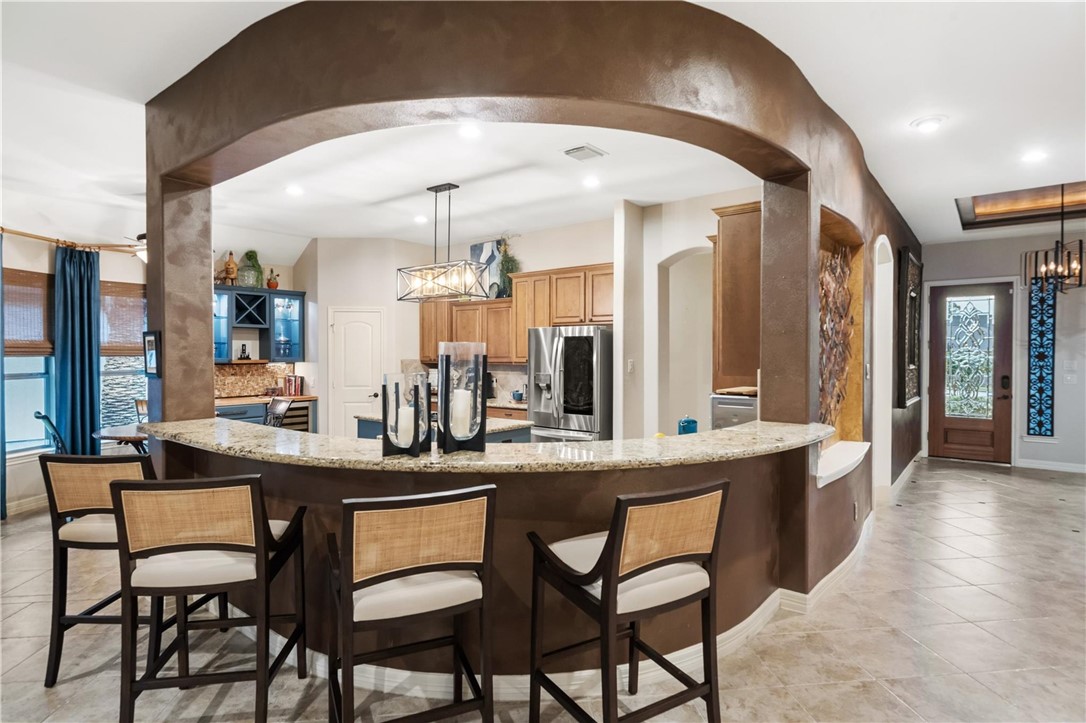 Immaculate 1-story home on a cul-de-sac in gated Augusta Pines with 3 beds, 2.5 baths, private study, formal dining, and approx. 10,000 SF lot. Gourmet island kitchen features granite counters, stainless appliances, gas cooktop, and custom wine bar with fridge. Spacious living room offers a cast stone fireplace and large windows with premium window coverings. The primary suite includes backyard views, a spa-like bath with soaking tub, walk-in shower, dual vanities, and a custom California Closet with a built in safe. Elegant tableaux panels enhance the entry and dining room, adding architectural character and visual appeal. Backyard is a true retreat with a covered patio, freestanding heaters, all-weather TV, generator and pool/spa with new 2024 pump, French drains and lush landscaping with palms. Additional upgrades: newer roof, LeafGuard gutters, and full irrigation system. Zoned to Klein ISD and just minutes to The Woodlands, and Grand Parkway. Well-maintained and move-in ready!