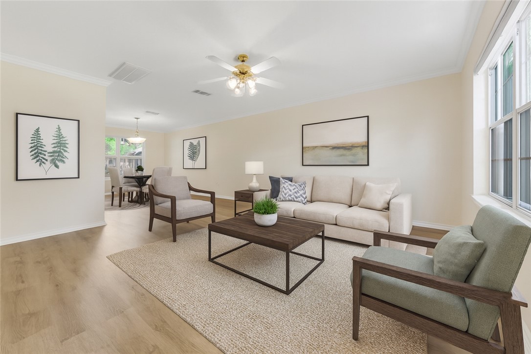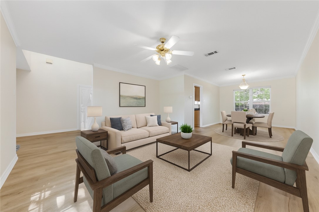 This spacious 4-bedroom, 2.5-bath residence offers a thoughtful layout with two large living areas, providing plenty of room to relax, entertain, or simply enjoy everyday living. Natural light pours in through the windows, creating a warm and uplifting atmosphere throughout the home.