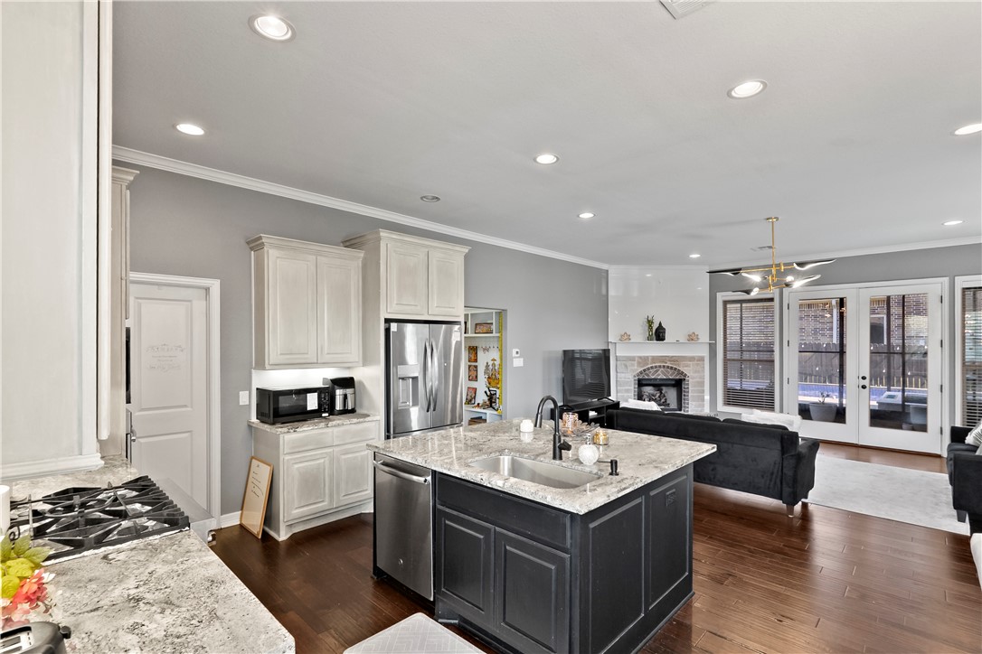 - Appliances: BuiltInGasOven,Dishwasher,Disposal,Microwave,TanklessWaterHeater,WaterHeater