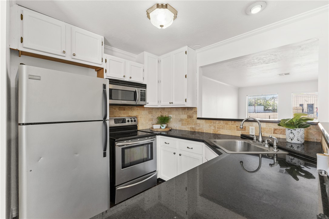This stylish 2 bedroom, 1.5 bathroom corner unit combines comfort, convenience, and modern upgrades throughout. Step inside to find fresh new paint and carpet, creating a warm and welcoming feel. The kitchen features electric appliances, refrigerator, and granite countertops, offering both durability and elegance for everyday living or entertaining. Have some peace of mind with brand new essentials including a new AC and ductwork, new water heater, new shower, new roof and new deck for relaxing outdoors or enjoying your morning coffee. Stackable washer and dryer will also convey! This move-in-ready condo offers everything you need- updates, stylish finishes and a prime corner unit close to shopping, schools, hospitals and restaurants.