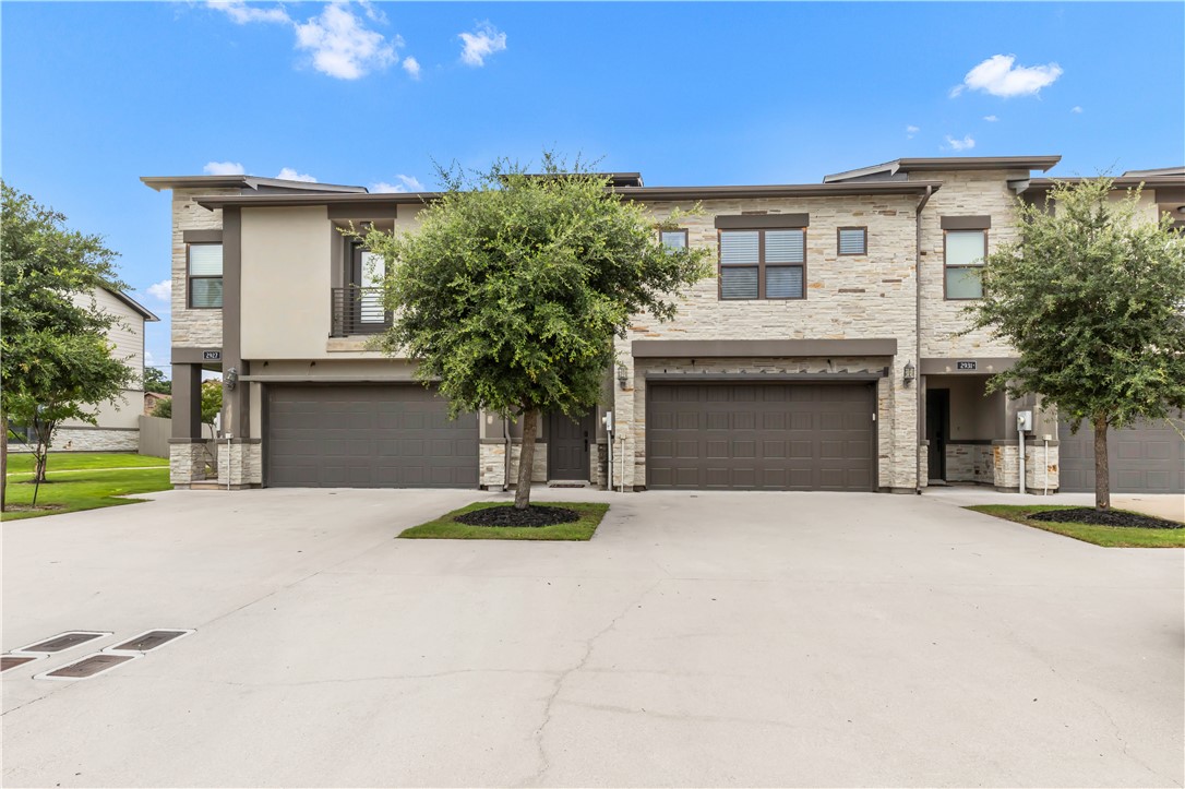 TURNKEY! Perfectly maintained townhome in Pershing Pointe Villas! FURNITURE INCLUDED IN SALES PRICE along with W/D and Refrigerator! Investor alert! Built in 2018 and boasting 1,720 sq ft, this turnkey home is being sold fully furnished, with king beds in every bedroom, plus a washer/dryer and refrigerator. Each spacious bedroom has its own ensuite bath with glass shower doors, large closets and access to three private upstairs patios. Downstairs features a covered patio, open living space with a modern kitchen with contemporary finishes...and an eating bar with seating for up to 4 people. Enjoy added convenience with a two-car garage and low-maintenance living as the HOA covers front and back lawn care and internet. Whether you're an investor or looking for a personal retreat close to Texas A&M, this home checks every box.
