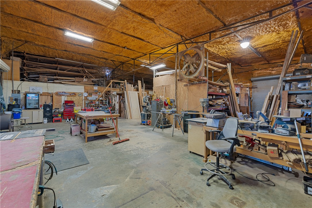 The building features an open space workshop thats over 2000sf and a thoughtfully designed living quarters, making it ideal for business owners or staff seeking on-site accommodations. The living space is cozy and functional, offering comfort and convenience for everyday living.