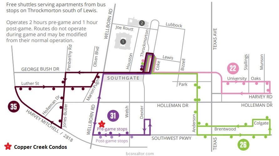 Attention investors, looking for a fully furnished income producing property? Welcome to 301 Southwest Parkway #338Copper Creek Condos, a premier gated community located approximately 2 minutes from Texas A&M University! This spacious 4 bedroom, 4.5 bathroom unit offers the perfect blend of comfort and convenience. Each bedroom features its own private en-suite bathroom and walk-in closet, providing privacy for residents and making it ideal for student living or shared occupancy. The open-concept living area flows into the kitchen, complete with granite countertops, eating bar, and plenty of cabinet space. Enjoy a partially covered private patio for relaxing outdoors. The community includes resort-style amenities such as a pool, hot tub, clubhouse, fitness center, and dedicated shuttle service to campus. Copper Creek is highly sought-after for both investors and parents of students, offering a strong rental history and professional on-site management. Conveniently located near shopping, dining, and major roadways, this would be an excellent long-term investment opportunity.