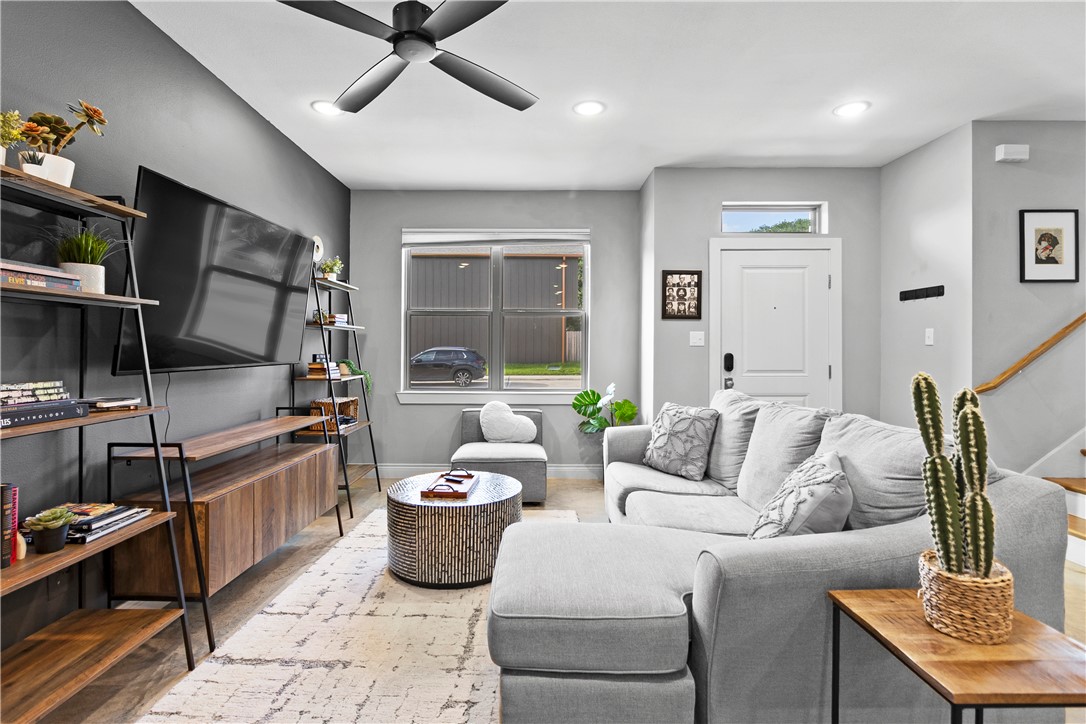 Modern, low-maintenance living just steps from the heart of Downtown Bryan! This stylish 2-bedroom, 2.5-bath townhome