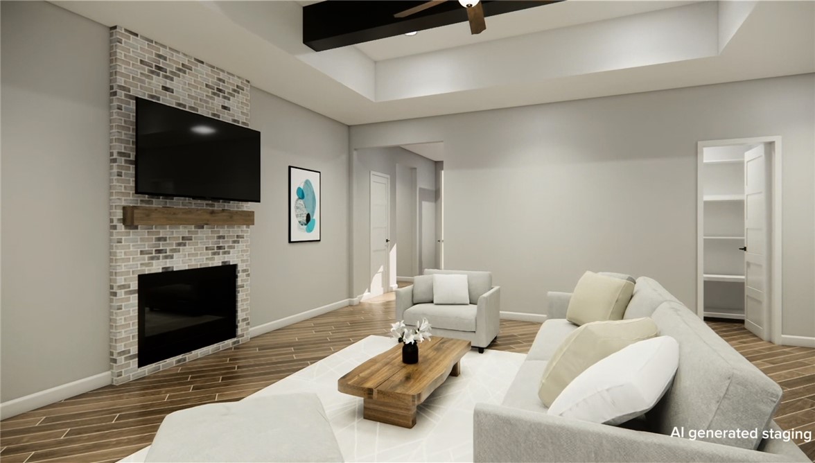 Welcome to this stunning, nearly-new home located in the sought-after Austin’s Colony neighborhood! This thoughtfully designed 3-bedroom, 2-bath home with a versatile flex room offers an open-concept layout perfect for both daily living and entertaining. The spacious family room features a cozy central fireplace and gorgeous wood beams and mantle, creating a warm and welcoming atmosphere.