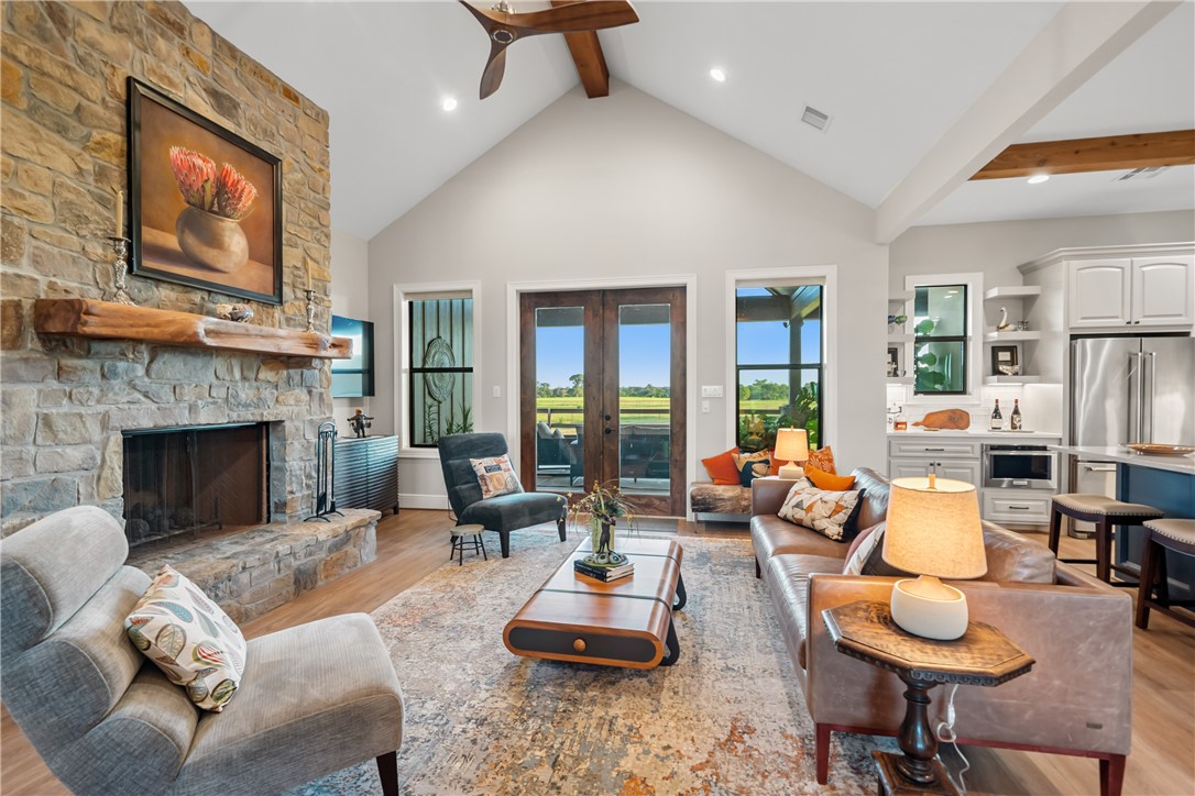 Nestled within the prestigious Nine Bar Ranch community, this 11.55-acre equestrian estate offers a rare blend of modern comfort and rural elegance. The custom-built home showcases soaring vaulted ceilings, artisan knotty alder doors, a grand stone fireplace, luxury vinyl planks throughout and a gourmet kitchen with high-end appliances. Equestrian enthusiasts will appreciate the professional-grade barn featuring four stalls, a climate-controlled tack room, wash rack, and a private guest suite with a full bath. The property is double fenced with three separate pastures with riding alley. Find comfort in an electric gated entry, a comprehensive security system, a 40'x60' workshop tall enough to accommodate an RV with hookup, and a covered back patio for outdoor living. Located just minutes from Brenham, Cypress, Navasota and College Station, with major retail and grocery development underway nearby, this turnkey estate offers an ideal blend of seclusion and accessibility.
