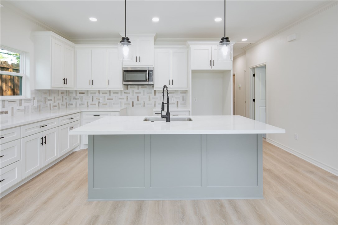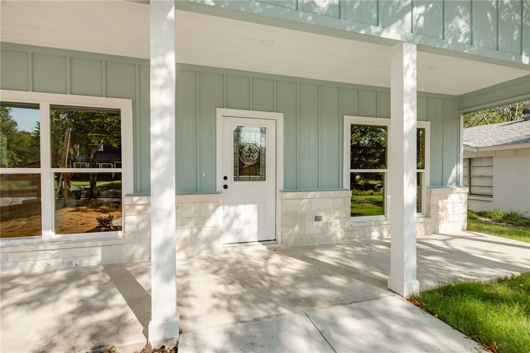 Discover a beautifully designed 3-bedroom, 2-bath residence that perfectly blends modern aesthetics with functional living. Nestled in a serene neighborhood of Bryan, TX, this home exudes both comfort and style, offering a tranquil retreat from the bustle of everyday life. Step inside to an open-concept living area where natural light floods through large windows, highlighting the luxury vinyl flooring that flows seamlessly throughout the main spaces. The heart of this home is the oversized kitchen with GAS stove/oven combo, boasting an expansive island that invites culinary creativity and social gatherings. The space is further enhanced by an upgraded kitchen backsplash, setting a sophisticated tone that balances both elegance and practicality. Each of the three spacious bedrooms is adorned with plush carpeting, providing a cozy and inviting atmosphere. The primary bedroom includes an en-suite bath designed for relaxation with thoughtful finishes and ample storage. Exterior features elevate this home’s appeal, with a charming front porch that invites leisurely morning coffees and a small back porch perfect for intimate outdoor moments. The oversized driveway offers ample parking options for residents and guests. This new construction home is a testament to quality craftsmanship and design, offering a welcoming environment you'll be proud to call home. Don't miss this opportunity to experience modern living in the heart of Bryan.