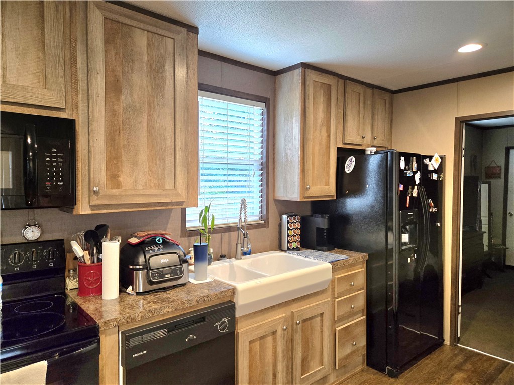 Well maintained Energy Smart Certified Clayton home situated on a fully fenced private yard. As you enter the home, you are welcomed to an open concept. The family room is bathed in natural light with a built in entertainment center. The kitchen has shaker style cabinets, farmhouse sink, pantry and matching Frigidaire appliances including the refrigerator. The dining room area has a sliding glass door leading to the back yard porch. The bedrooms are split and the primary bedroom offers a walk in closet along with an en-suite bath, complete with a soaking tub, dual sinks and separate shower. The home offers laminate wood look flooring, 8 foot ceilings, low e windows and a programmable thermostat. Outside is a covered front porch, storage shed and a carport. This property is ideally located just minutes to the vibrant heart of downtown Caldwell - perfect for those who crave the convenience of city living while enjoying the comfort of a cozy neighborhood.