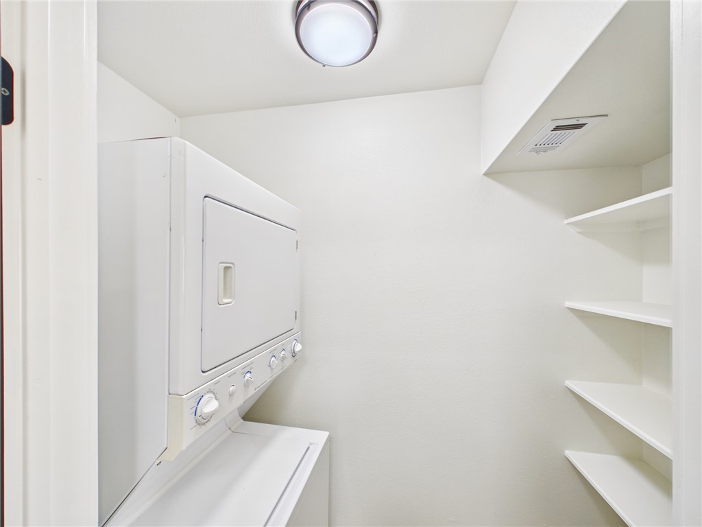 Recently remodeled loft style unit in Bryan, close to Texas A&M. Bedroom overlooks living area. All stainless appliances included and with stacked W/D