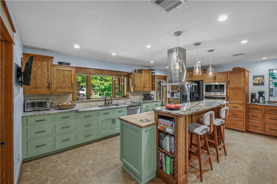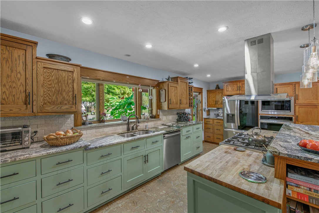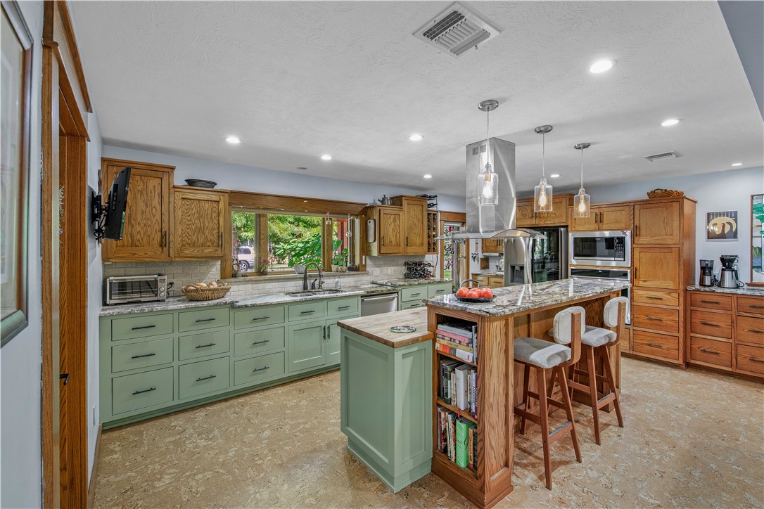 Inside, thoughtful design elevates everyday living: a resilient cork floor in the kitchen provides ergonomic comfort for extended standing, while versatile granite and butcher-block countertops frame a professional-grade Verona Italian gas range and a secondary built-in oven. Rich oak cabinetry and doors throughout the home exude warmth and craftsmanship, while the media room offers a cozy space for entertaining. The primary bedroom flows seamlessly onto a cedar-wood screened porch - its adjoining bath bathed in natural light from windows gazing toward the tranquil backyard.