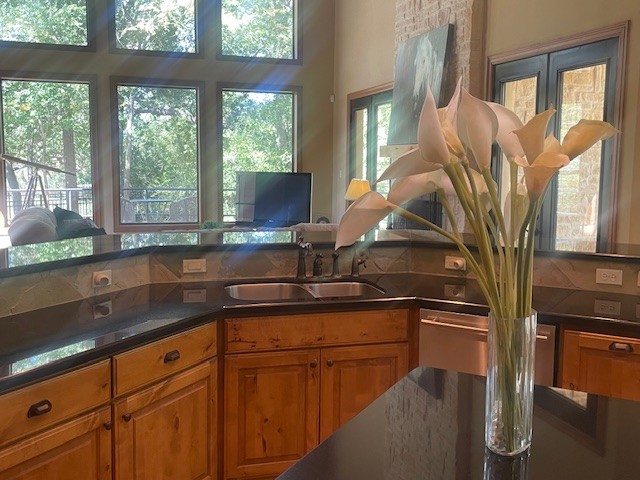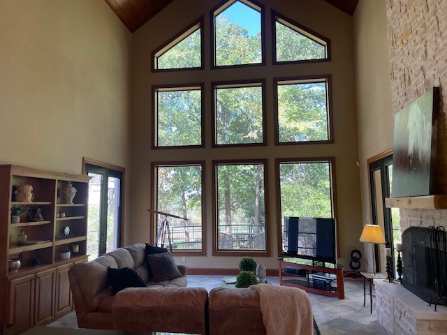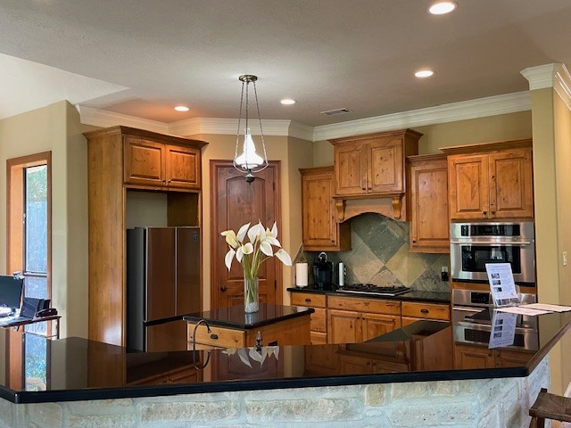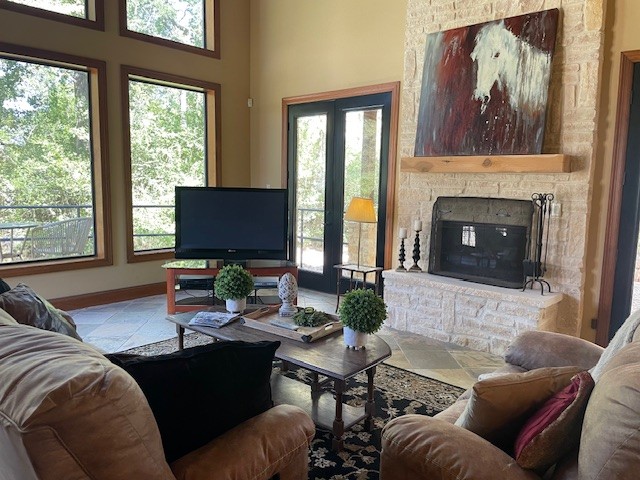 Traditions Club & Community! This 3/3/3 is offered with back view of the golf course and wooded buffers for privacy. Features include 25' cathedral ceiling with a wall of windows in the living area. Stone to ceiling fireplace, slate flooring, 10' Arched Canterra iron entry door, open kitchen to living for entertaining, two bedrooms downstairs, two master bedrooms, loft sitting area, 10' ceilings with molding,covered outdoor patio with stone fireplace. Come Live Where Aggie's Play!