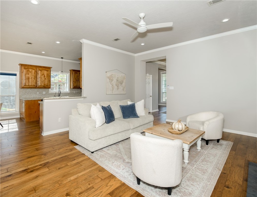 The kitchen offers an abundance of countertop space, a custom island on wheels for flexible use, and a large pantry too. The laundry room includes a convenient wet sink. The primary suite is generously sized with a spacious bath, while the secondary bedrooms each feature walk-in closets and plenty of floor space to fit all your furniture. Fresh wall colors, stylish decor, and the warmth of hardwood floors create a welcoming and southern modern feel throughout. Located in the College Station ISD with an elementary school just a hop skip & jump away, this home truly has it all—comfort, charm, and convenience! Move in ready, so let’s make this your Home Sweet Home!