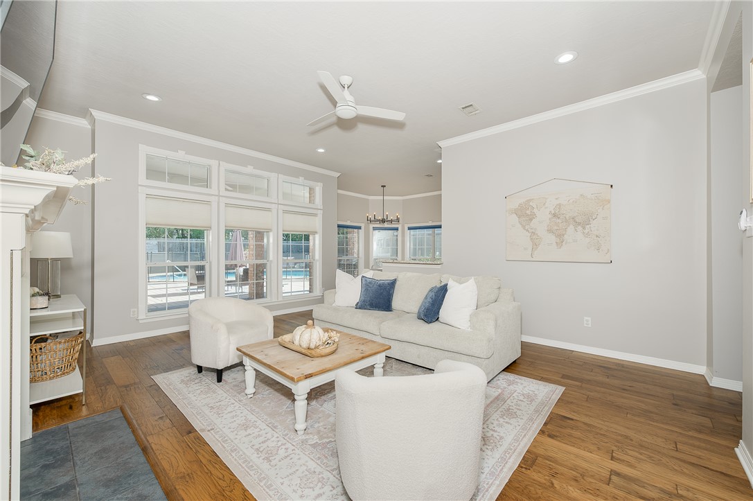 Welcome home to this beautifully maintained 4-bedroom, 2-bath residence in the highly sought-after Edelweiss Estates—right in the heart of Aggieland! From the moment you step inside, you’ll be greeted by warm wood floors and an inviting atmosphere that instantly makes you feel at home. A formal living room sits to your left and a formal dining room to your right, creating the perfect layout for gatherings. The spacious main living area is filled with natural light and features a wall of windows overlooking the backyard oasis with a pool, patio deck, and 8-foot privacy fence—an ideal space for relaxing or entertaining.