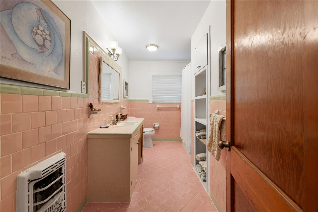 The kitchen is straightforward and functional with plenty of storage and workspace. All three bedrooms are comfortably sized, and the hall bath keeps its vintage tile and built-in storage. Out back, a fully fenced yard gives pets and projects their own space. The detached garage provides covered parking plus a stand-alone shower - great after yard work or shop time.