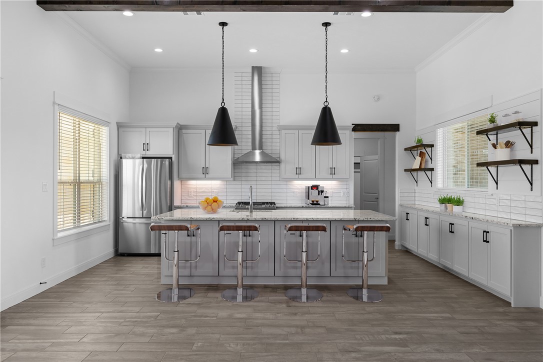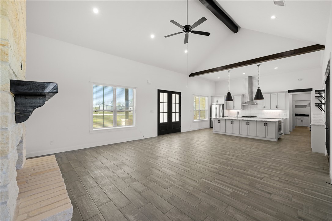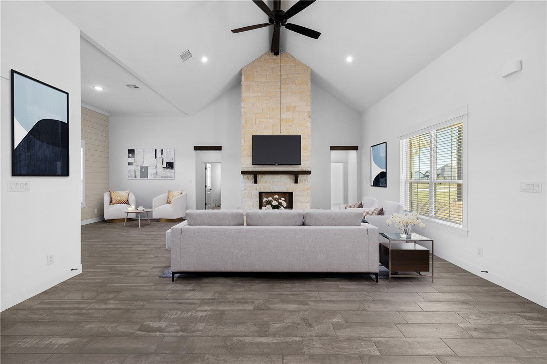 Discover a lovely blend of modern luxury and serene country living in this stunning, nearly new Craftsman-style home! With 4 spacious bedrooms and 2.5 bathrooms, this home has never been fully lived in. Nestled on a picturesque 1.32 acre lot with breathtaking views of rolling pastures, this property offers a peaceful retreat while still providing all the conveniences of contemporary life—including high-speed fiber optic internet. Step inside to an open and airy floor plan, where soaring cathedral ceilings and expansive windows flood the space with natural light. The heart of the home is the 42-foot floor-to-ceiling fireplace, a stunning focal point in the oversized living room that creates an inviting atmosphere for cozy nights or entertaining guests. The chef’s kitchen is a dream come true, boasting an abundance of counter space, a walk-in pantry, and a gas range. The covered back patio provides space to enjoy both sunrise coffee and sunset relaxation. The luxurious primary suite is a private retreat, featuring a raised ceiling, an expansive spa-like bathroom with dual vanities, a soaking tub, a large walk-in shower, and a massive walk-in closet. The three additional bedrooms each come with their own walk-in closets, ensuring ample storage for everyone. Additional highlights include a large laundry room and a well-designed mudroom, both equipped with built-ins, making organization effortless. Don't miss the opportunity to make it yours!