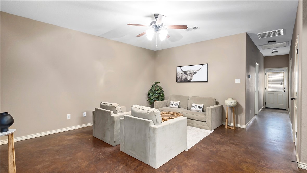 Enjoy this 3 bed/3 bath townhome in The Barracks master planned community. Located just 2.5 miles from campus and on the A&M shuttle route (just a short walk to the bus stop), 34 Fish Camp runs to the Barracks! This townhome offers an open concept living space with a large kitchen featuring granite counters, plentiful cabinets, large stone accented eating bar, walk-in pantry, and as a bonus, the refrigerator is included. All of the large bedrooms offer walk-in closets and private access to a full bathroom. Laundry area comes complete with brand new washer and dryer. Fully fenced backyard. HOA fees cover the cost of digital cable and internet, full lawn care including irrigation and all exterior maintenance. Resident members may enjoy access to The Cove, the nationally recognized resort-style adult water park with Pro Flow surf machine, massive lazy river, large swim-up bar, bungalows and cabanas for rent, yard games, and a wakeboard cable park. In addition, residents can enjoy outdoor fitness parks, sand volleyball courts, basketball courts, and dog parks. Don’t miss the opportunity to live in this pristine townhome this year, it won’t last long!