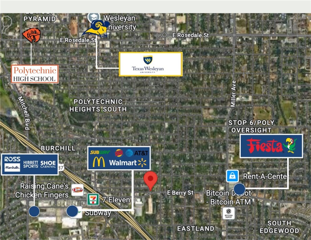 ENGLEWOOD HEIGHTS ADDITION Block 34 Lot 3 BLK 34 LOT 3 LESS ROW Outstanding property located in the rapidly developing Polytechnic / Englewood Heights area of Fort Worth. Down the street from Texas Wesleyan University with convenient access to Hwy 287, Downtown Fort Worth, and DFW Airport. Zoned “ER” Neighborhood Commercial Restricted with potential for rezoning to R-3 Multi-Family Residential (buyer to verify). Minutes from the Fort Worth Stockyards, AT&T Stadium, and other major area attractions. High-visibility location with steady traffic flow in an area experiencing significant redevelopment.
