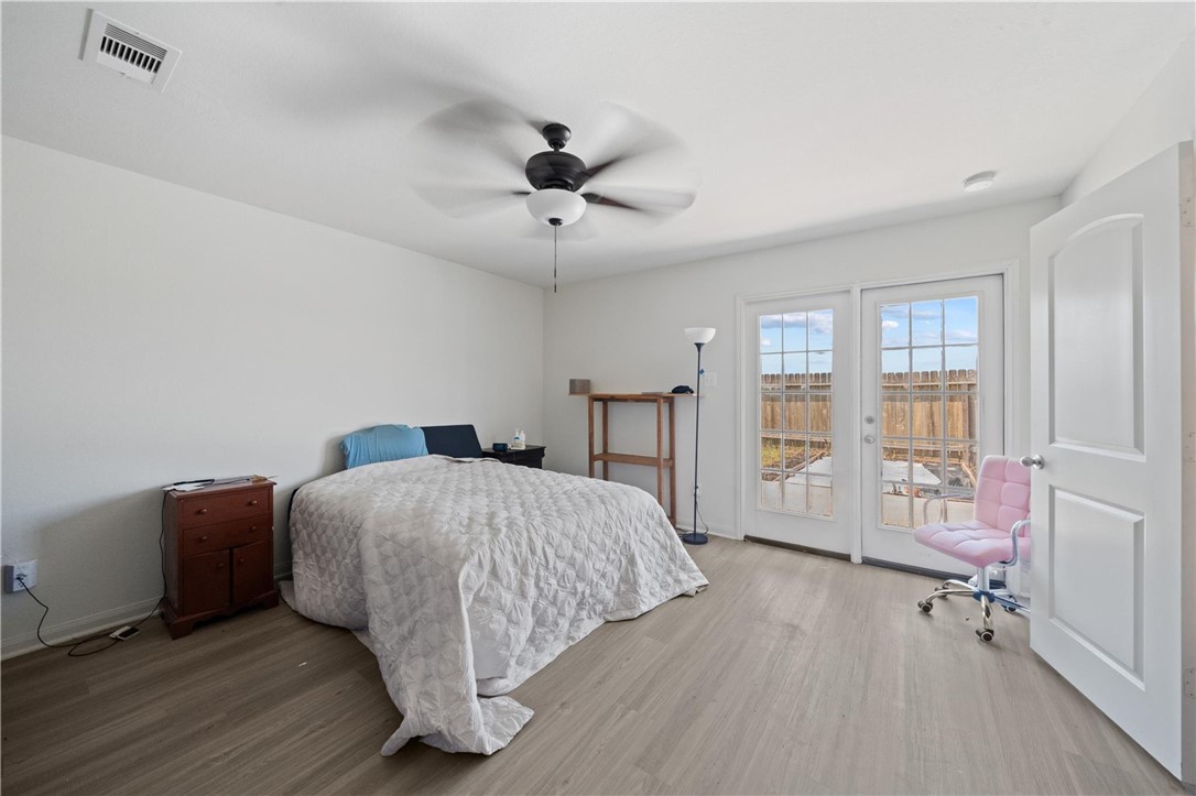 Beautifully maintained brick home on a spacious corner lot with fresh interior paint and upgraded laminate flooring throughout most of the home. The inviting living area opens to a bright dining space with 2" blinds and flows easily into the kitchen with granite counters, dark cabinetry, upgraded refrigerator, and Frigidaire range/oven. A private study with French doors provides the perfect flex space for work or hobbies. The well-sized bedrooms include a large primary suite with French doors to the backyard, plus a bath with dual sinks, soaking tub, and separate shower. Exterior highlights include an upgraded heavy-duty garage door with automatic opener, keyless entry, and Ring doorbell with camera. Enjoy a full fenced backyard with patio and wide walkways, offering plenty of space to relax or play.