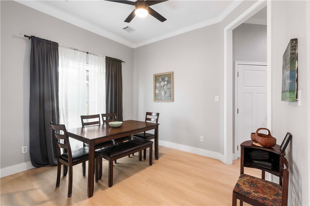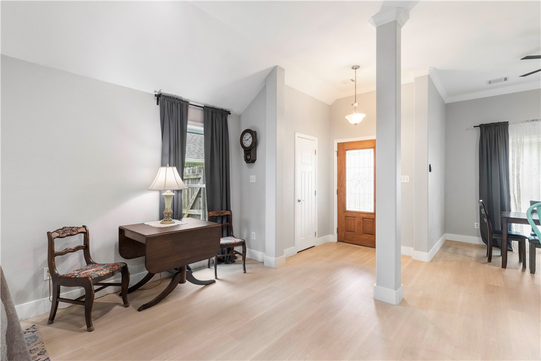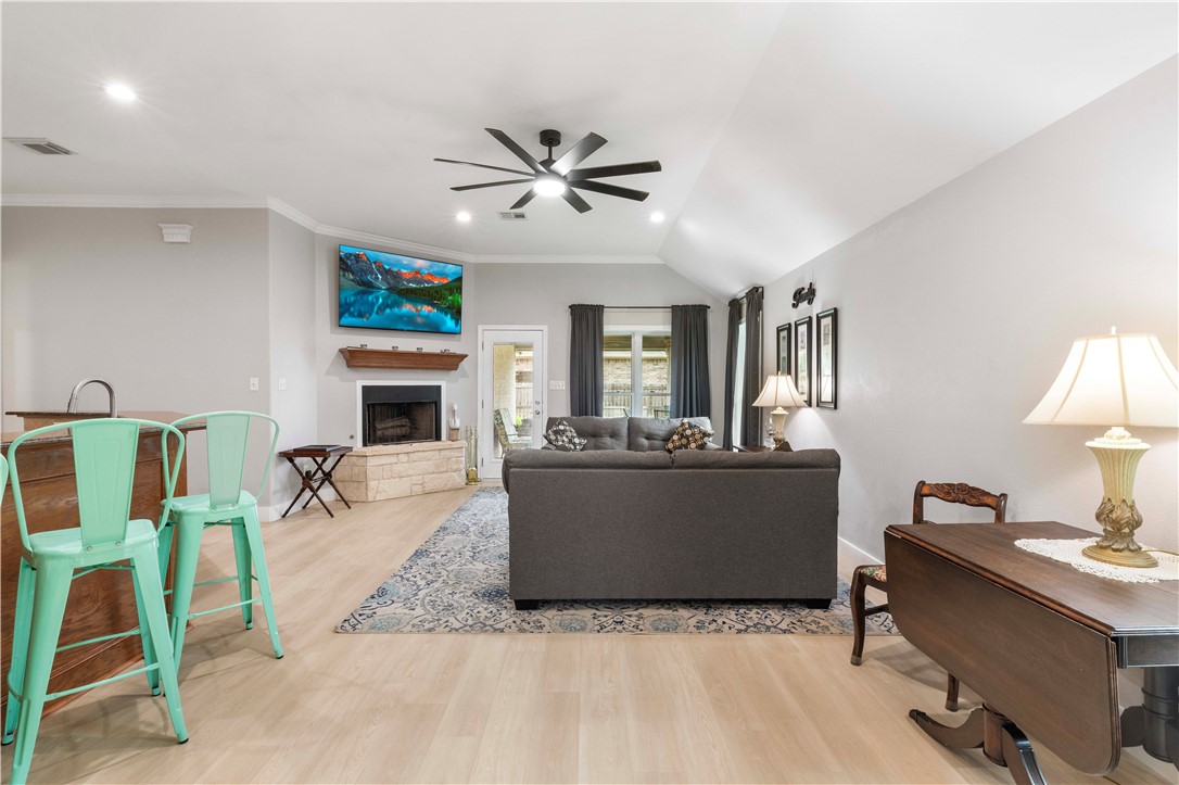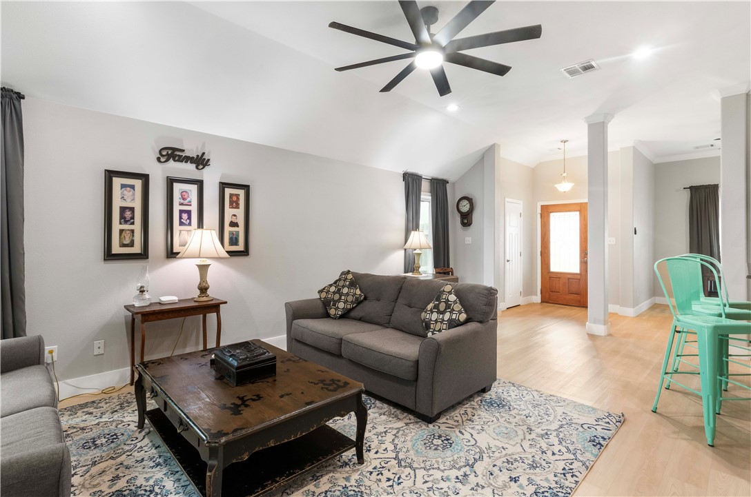 This beautifully maintained 3 bedroom, 2 bath home awaits you in the desired South College Station neighborhood of Dove Crossing, offering quick access to shopping, restaurants, schools, parks and so much more! The home boasts a split, open concept floor plan that seamlessly connects the kitchen, dining and living room that comes complete with a woodburning fireplace. High ceilings complemented by plenty of windows and natural light creates a refreshing ambiance that welcomes you home. Add quality finishes such as spacious granite countertops, updated details and high end vinyl plank flooring ensures this home is move in ready from top to bottom. Enjoy the large covered back patio perfect for Texas nights and summer grilling and a large backyard for gardening with plenty more room to play! The home has an energy efficient tankless water heater, as well as other major updates include a New AC Unit 2020, New Roof 2021, New Fence 2021-2022-2025, New updated energy efficient windows 2024, and a upgraded Master Spa shower in 2022. Creekview Elementary, Cypress Grove Intermediate and College Station High School, all reside within walking distance to your new home. Don't miss out on this exceptional home in a prime location. Neighborhood does allow for rentals. Call to schedule your showing!