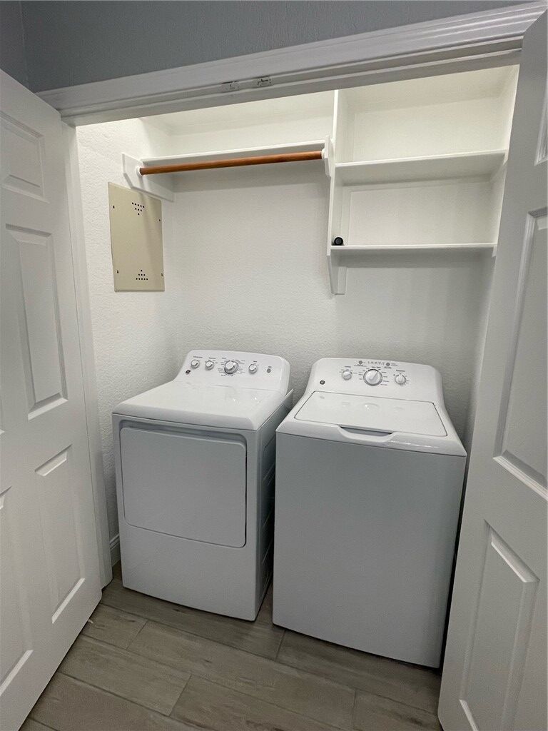 LOOKING FOR A 6-MONTH LEASE? PRE-LEASING FOR SPRING SEMESTER!! AVAILABLE JANUARY 1, 2026. Charming 2-bed, 2-bath duplex unit in Edelweiss Gartens! This updated home (Nov. 2023) boasts a fresh interior with wood-look tile flooring throughout, accentuating the spacious layout. The kitchen features sleek quartz countertops and stainless steel appliances, including a refrigerator, electric range, microwave & dishwasher while a full-size washer and dryer offer added convenience. Enjoy the privacy of a wood-fenced backyard and unwind on the covered front porch. With HOA-managed landscaping and parking spaces behind the unit, this residence ensures ease of maintenance and accessibility. Situated minutes away from South College Station schools, shopping, and dining, this property combines modern upgrades with a prime location for comfortable living. Don't miss this opportunity for a turnkey home in a sought-after neighborhood! Call today to schedule a tour.
