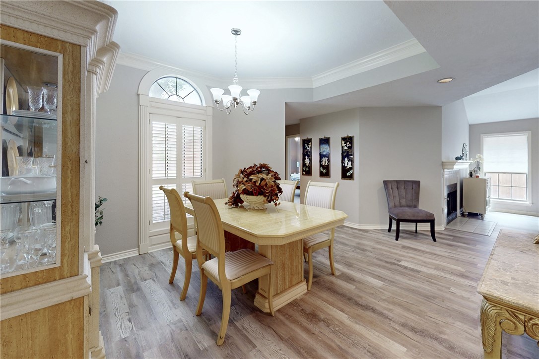 Welcome to this beautiful home, perfectly situated on a corner lot in the sought-after neighborhood of Springbrook-Cypress Meadow. This inviting property offers a thoughtful, open-concept layout designed for both everyday living and entertaining. The heart of the home is the spacious kitchen, featuring granite countertops, stainless steel appliances, and two convenient eating bars that open to the living area and breakfast nook — all with a lovely view of the oversized backyard. Raised ceilings and large windows fill the home with natural light, while a cozy gas-start fireplace creates a warm and welcoming atmosphere. The primary suite is located at the front of the home and features a spacious bedroom with large transom-topped windows, generous closet space, and a relaxing en-suite bathroom with a separate soaking tub and walk-in shower. Additional highlights include vinyl plank flooring in the living and dining areas, plush carpet in the bedrooms, and a split floor plan for added privacy. Step outside to a large backyard, ideal for family gatherings, outdoor fun, and pets at play. The rear-entry garage adds both convenience and curb appeal. Located just minutes from Tower Point shopping, top-rated schools, hospitals, dining, and entertainment — this home truly has it all!