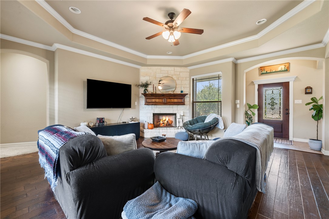 Welcome to 3912 Devrne Drive in sought after Edelweiss Gartens subdivision. This two-story home offers 3 bedrooms, 2.5 bathrooms, and an open living area with a stone fireplace and large windows providing natural light. The kitchen includes an island, granite countertops, and ample cabinet and counter space. The primary suite located on the first floor features double vanities, a garden tub, separate tiled shower, and walk-in closet. Upstairs are two additional bedrooms, a full bathroom, and a built-in desk area. A 2 car garage and a Large covered patio with privacy fenced back yard. Close to shopping, restaurants, parks, schools, and medical! HVAC replaced in 2021, New hot water heater as well.