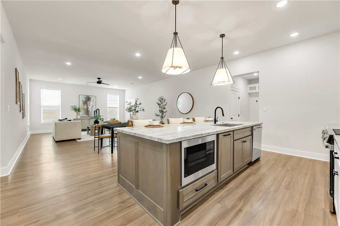 Boxwood Homes presents this BRAND NEW 2,322 square foot 4-Bedroom, 3 Bathroom 2-story home in sought after Brewster Pointe. Step through the gorgeous mahogany front door into the sizeable entry way with soaring ceilings and designer vinyl flooring. The entryway will lead you into the open concept kitchen and living areas with high ceilings and plenty of windows. The kitchen is a dream with quartz countertops, zero radius sink, under counter microwave, walk in pantry, stainless steel appliances, and designer lighting. The primary suite is the perfect retreat with large windows for ample natural light as well as a spa-like primary bath. The primary bath boasts his and her vanities separated by a linen closet for plenty of storage as well as a massive walk-in shower and standalone tub combo you will not want to miss. The large primary closet is attached. The home showcases 3 more sizeable bedrooms, one downstairs and two upstairs as well as 2 more designer baths. You do not want to miss out on this home! Schedule a showing today and come see why BOXWOOD IS BETTER!