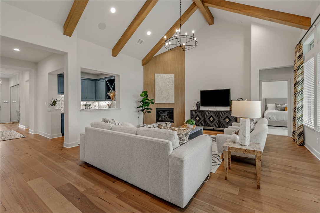 Located on a greenbelt lot, you’ll love The Taylor in Oakmont’s newest private phase. The heart of the home is the family room, with a corner fireplace and raised ceiling, complete with stained architectural beams. Family fun seamlessly transitions to the extended covered patio, nestled between the owner’s suite and breakfast area. Featuring a gourmet kitchen with stainless steel appliances and hidden butler’s pantry, you’ll never lack space for all of your cooking needs.