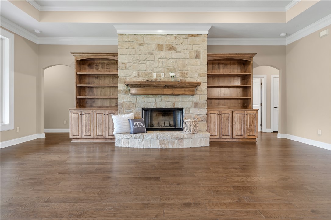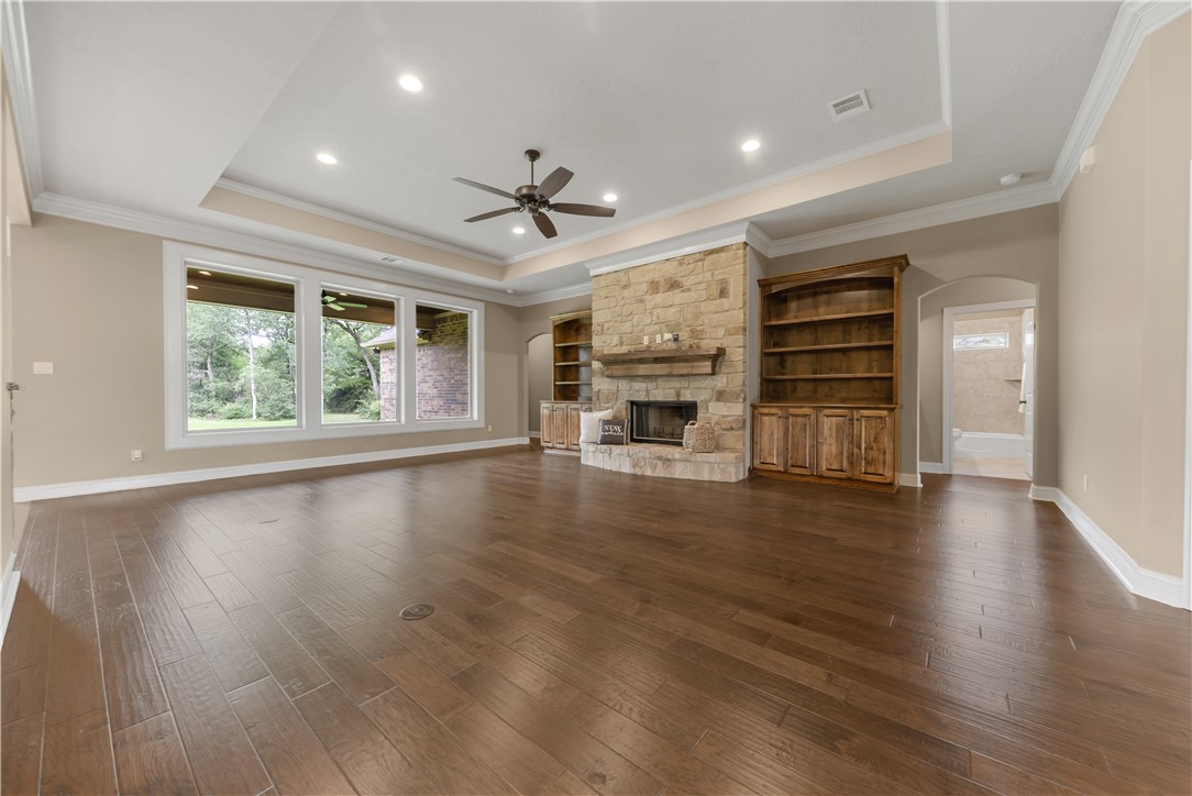 Welcome to this beautifully crafted home located in the desirable Great Oaks subdivision. Nestled on a serene 1-acre lot with mature trees and meticulous landscaping, this 4-bedroom, 3-bathroom residence offers over 3,000sqft of well-designed living space. Step inside to discover rich wood flooring, expansive windows that flood the home with natural light, and a warm stone fireplace in the spacious living area. The kitchen is a chef’s dream—complete with granite countertops, custom cabinetry, gas cooktop, island, breakfast bar, and both breakfast nook and formal dining room. The private home office features built-in cabinetry and French doors, making remote work a breeze. The primary suite is a true retreat, offering a spa-like bathroom and an impressive walk-in closet. Each secondary bedroom is generously sized with ample closet storage. Additional highlights include a 2-car garage, a security camera system, and a covered back patio perfect for entertaining or unwinding in the peaceful wooded setting. Although located in Great Oaks, this home is part of the Mission Ranch community, granting access to world-class amenities including a resort-style pool, fitness center, pickleball courts, walking trails, and a scenic lake. Enjoy the peace and quiet of this tranquil neighborhood while being just minutes from schools, shopping, dining, and medical facilities. This home offers the ideal mix of privacy, confort, and convenience.