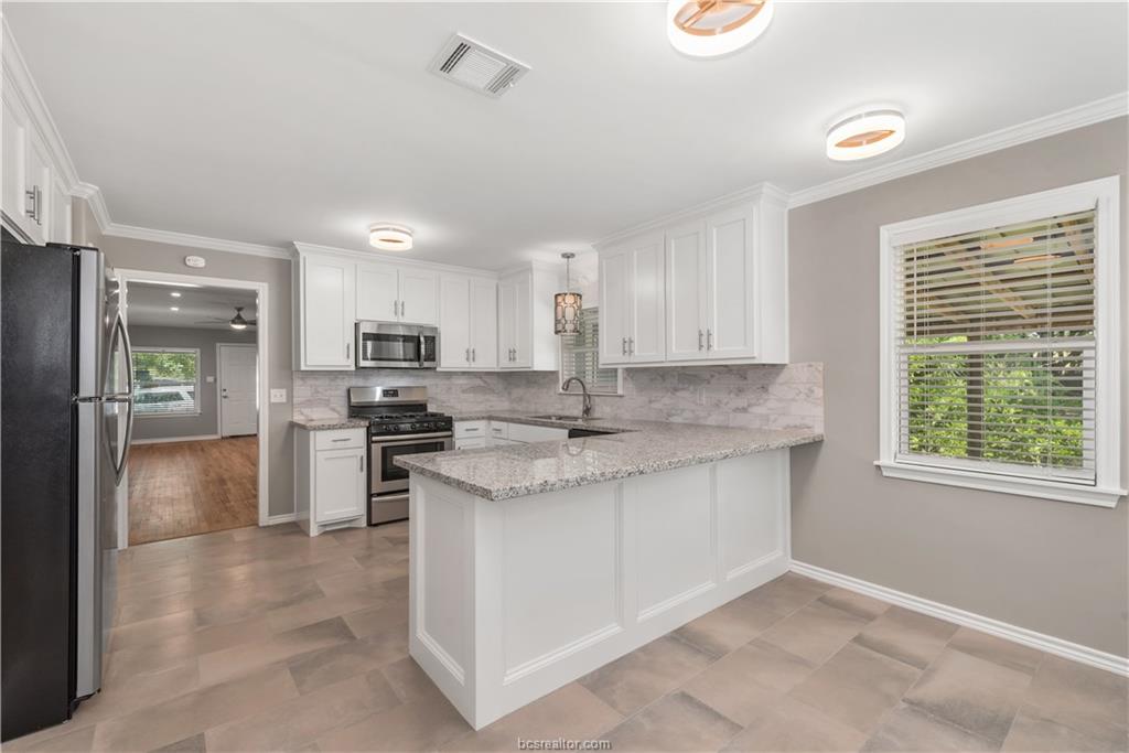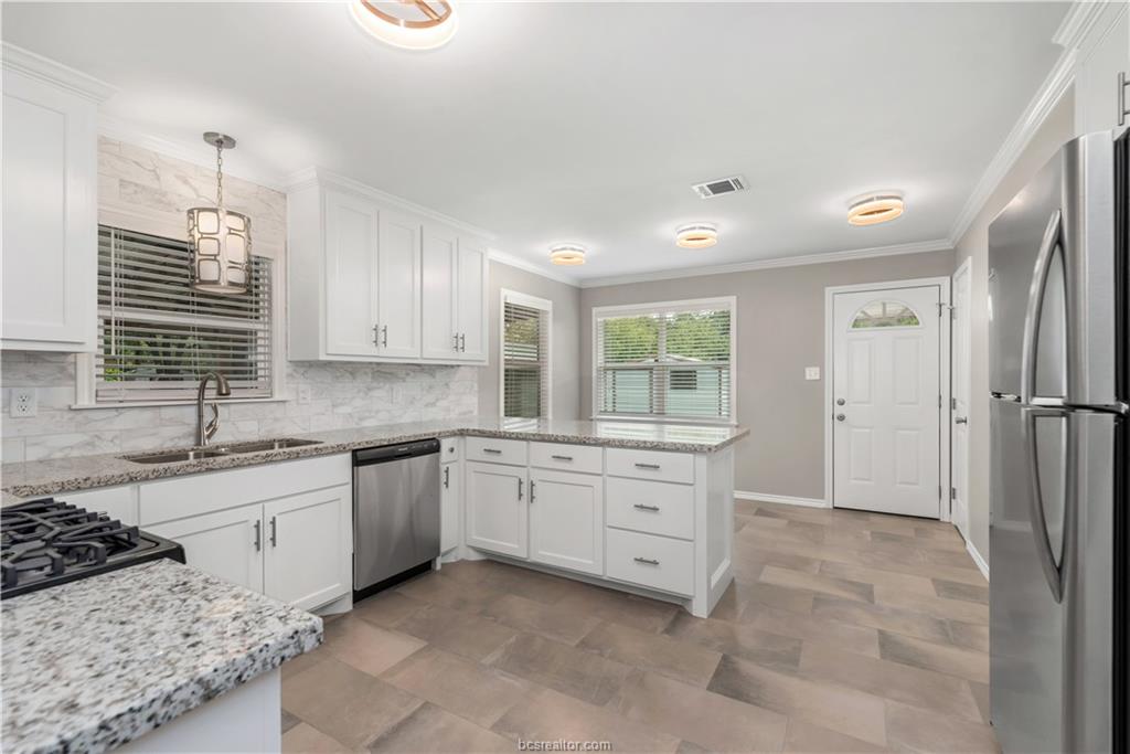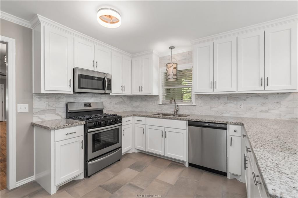 Available June 25, 2026! Don't miss out on this beautifully remodeled 3 bed, 2 bath house walking distance to Blinn and close to Texas A&M! This home boasts gorgeous granite countertops, stainless steel appliances and a huge fenced in backyard that's perfect for your fur babies. A large covered patio and in-unit washer/dryer complete this adorable home!