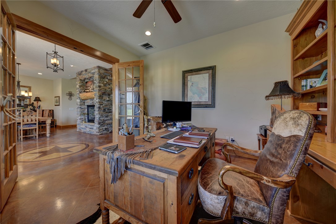 Enjoy the perfect blend of Texas elegance and modern convenience at 41968 Kelley Rd, Hempstead, TX. Situated on 19.485 acres, this custom 3,339 sq. ft. single-story home (2011) offers 3 bedrooms, 4 baths, and a 3-car garage with porte-cochere entry. Inside, you’ll find stained concrete floors, soaring ceilings, stone fireplaces, granite finishes, and expansive windows overlooking the pool, outdoor kitchen, and wide-open Texas skies. The chef’s kitchen, spa-like primary suite with copper soaking tub, and seamless indoor-outdoor flow create a true retreat. Horse/livestock enthusiasts will appreciate the 40X60 barn with 3 stalls, full apartment, A/C storage/tack rooms, and pipe turn-outs. With perimeter fencing, cross-fencing, improved grasses, and a stocked pond, the land is ready for cattle, horses, or hay production. This is an ag-exempt property with no floodplain. Just minutes from town yet worlds away, this estate embodies the essence of refined country living in Waller County.