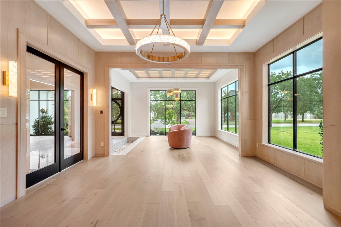 Contemporary Masterpiece on one of the few remaining golf course lots in Miramont. Rarely does a home of this scale and quality become available. An astonishing foyer hints at the craftsmanship and drama you'll find inside. From the stunning inlaid marble floors to the finely detailed ceilings to the impactful lighting, all were selected to make a statement. An expansive dining room with floor to ceiling windows beautifully compliments the formal sitting area reached by a bridge over a delightful water feature. With a full butler's pantry adjoining the dining room, entertaining is elegant and effortless. A wood-paneled office adjoins the formal areas. The casual living spaces are no less stunning with an open kitchen, casual eating area and a living space featuring a lit marble waterfall bar and warm wood built ins. A wall of steel windows and doors offer expansive views of the golf course beyond the calming blue waters of the pool. The owner's suite offers incomparable luxury with a marble wet room featuring a double shower and a soaking tub, as well as a stunning dressing room. With three bedrooms downstairs and one guest room upstairs off the gameroom, all have fantastic golf course views. A walk-in safe/safe room with concrete block walls is ventilated for your convenience. Outdoors enjoy multiple terraces, covered patio spaces and a pergola while enjoying the outdoor kitchen, in-ground pool and hot tub - all overlooking the golf course.