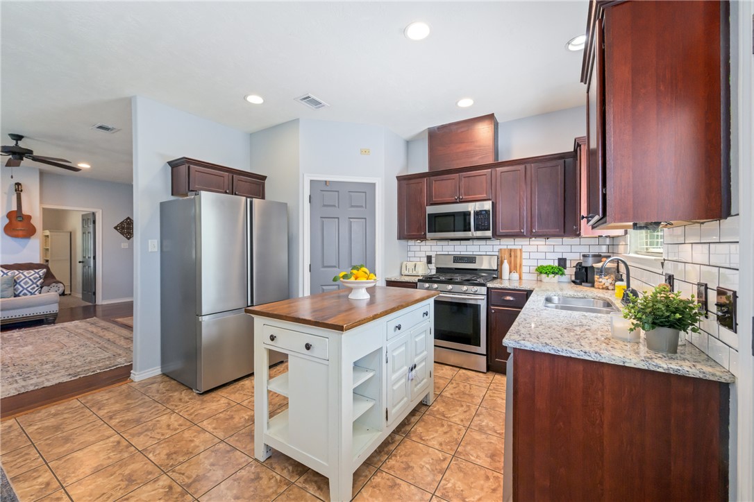 Welcome to this inviting 3-bedroom, 2-bath home in South College Station! The open living and dining areas create a seamless space for both everyday living and entertaining, while the split-bedroom design offers privacy for the primary suite with secondary bedrooms tucked away for family or guests. The kitchen combines function and style with stainless steel appliances, abundant counter space, and a central island. Step outside to a backyard designed for year-round enjoyment, featuring both a deck and a patio—perfect for relaxing or hosting, and a BONUS- no rear neighbors! The partially converted garage adds even more versatility with a spacious mudroom and flexible bonus area that are heated and cooled, plus a half garage still available for storage. Seller is open to a concession to reverse the garage conversion. We have a handyman estimate in hand of $2600 for the work. Recent updates bring peace of mind, including a new roof (2022), kitchen appliances (2023), water heater (2024), and a recent A/C checkup and cleaning. Residents of this sought-after neighborhood enjoy access to a pool, splash pad, playground, and tennis courts, making this home a wonderful blend of comfort, convenience, and community.