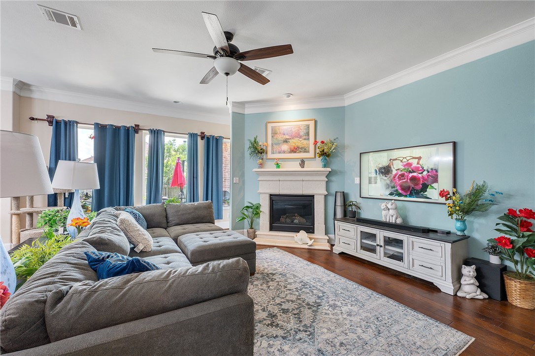 This Castlegate II home has space for everyone — five bedrooms, four and a half baths, two living areas, two dining spaces, and a private office. The design makes it easy to live comfortably with multiple generations or anyone needing extra room under one roof. The kitchen is built for gathering — a huge island, double ovens, gas range, and storage everywhere. It opens to the living and dining areas so no one feels left out while meals or conversations are happening. The primary suite is downstairs and tucked away for privacy. Upstairs, you’ll find another large living area and spacious bedrooms that can flex for guests, hobbies, or study space. Outside, there’s a fenced backyard with a covered patio — a quiet spot to unwind or grill. People love living in Castlegate II because of its community pool, parks, and walking trails, plus the convenient access to shopping and restaurants nearby. If you’ve been searching for a large home in Castlegate II with an open layout, fenced yard, and room for everyone, this one fits what people often describe when they say, “We need more space but still want to feel connected.”