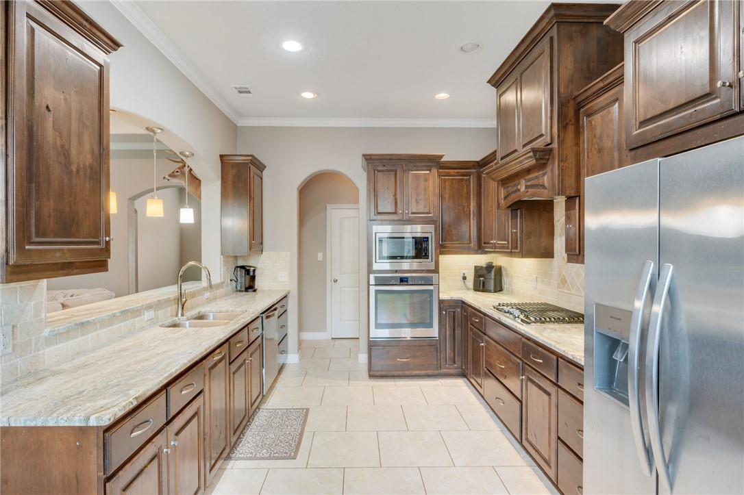 NEW ROOF and NEW PRICE . . . What a beautiful place to call home! This 4 bedroom, 3 full bath home offers a large living area that overlooks the back yard through large windows. The Austin stone fireplace complete with gas logs will allow for enjoying cozy evenings at home. Living room accents include tray ceiling with wood beams, custom wood cabinetry/shelves and handscraped wood flooring. Kitchen opens to the living room with a passthrough that offers additional convenience to the homeowner. The kitchen boasts stainless appliances, gas cooktop, granite countertops and tiled backsplash as well as undermount stainless sink. Dining/breakfast space located between the kitchen and living is spacious enough for larger dining furniture and opens to the patio. Additional room off the living area would be ideal for an extra dining space or a second living room. Gorgeous and serene Primary suite has beautifully wood-cased windows and raised tray ceiling. HUGE walk in closet. Beautiful Primary bath has separate vanities, large garden tub and walk in shower complete with bench seat. Laundry room has folding counter and lots of storage. All of this . . . PLUS. . . an extra room suited well for a private study area or craft room! Enjoy weekends and evenings on the back patio which has recently been enlarged for additional outdoor space. Hurry in to see this great home!