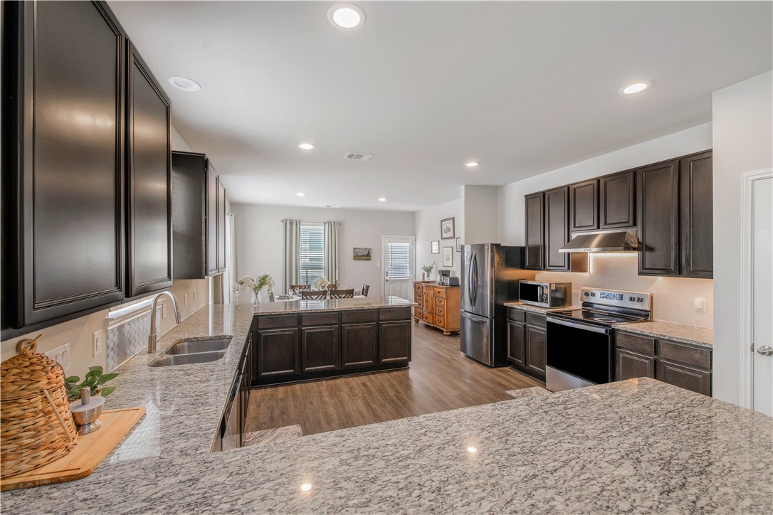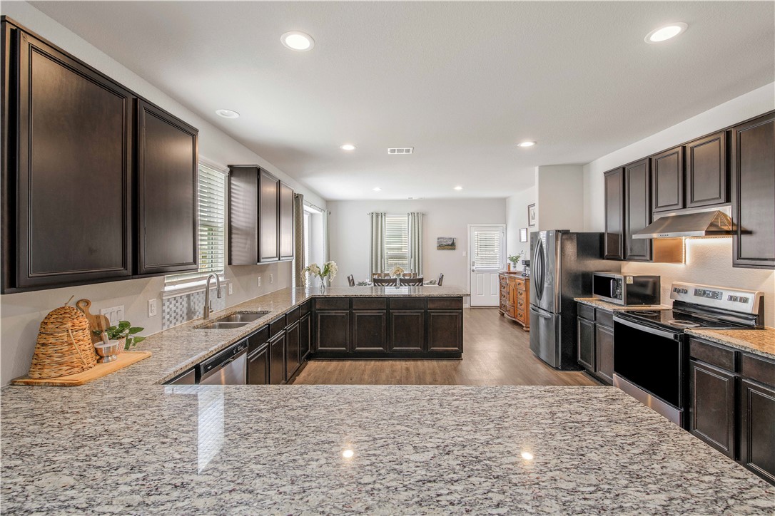 Located in the desirable Alamosa Springs neighborhood, this home offers a perfect blend of comfort, and functionality. The home is within walking distance of the Expo Center, making it ideal for enjoying local events. It boasts an impressive open floor plan with soaring 2-story ceilings in the living room, allowing natural light to flood the space through its many windows, creating a bright and inviting atmosphere. The spacious kitchen is a standout, featuring granite countertops and ample cabinetry for all your culinary needs. The dining area offers an ideal space for both casual dining and entertaining guests. The downstairs primary suite provides a private and peaceful retreat. The attached master bathroom includes dual sinks, a relaxing soaking tub, a separate shower, and an oversized walk-in closet that can easily serve as a home office or game room, offering flexibility to suit your needs. Upstairs, you’ll find three generous bedrooms, each with its own large closet, ensuring ample storage for everyone. A versatile family room adds additional space, perfect for relaxation, hobbies, or activities. The garage with its built-in safety bunker, could be used as a gun safe or extra storage. Conveniently located just minutes from the Texas A&M campus, Health and Science Center, and RELLIS campus, this home is ideal for those looking to stay close to work or school. Downtown Bryan is only 10 minutes away, offering an array of restaurants, shops, and entertainment.