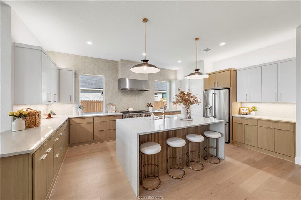BUILDER OFFERING $10K YOUR WAY! Use it toward closing costs, upgrades, or a rate buy down. Welcome home to your new Lockhart Custom Home featuring a striking metal front door and impressive foyer with 23-foot ceilings. Enjoy modern, cohesive designer finishes including quartz countertops and wood flooring that flows through the common areas and owner’s retreat. The show-stopping kitchen offers modern cabinetry, a working island, 48” GE Café dual fuel range, counter-depth GE Café fridge, stainless Kohler sink, and walk-in pantry. The spacious living room features a cathedral ceiling and gas log fireplace. A half bath provides quick access to the 26-ft covered patio with outdoor kitchen and stained tongue-and-groove ceiling. Downstairs includes two bedrooms and 2.5 baths including the luxurious owner’s suite with dual vanities, soaking tub, walk-in shower, and closet connected to laundry. Upstairs offers two bedrooms, a full bath with dual sinks, game room, and ample attic storage. Energy features include foam insulation, casement windows, 17 SEER Trane heat pump, Aprilaire dehumidifier, tankless water heater, and pre-wiring for surround sound and security. Greens Prairie Reserve amenities include nature trails, stocked ponds, playscapes, pavilion, fiber internet, and community events.