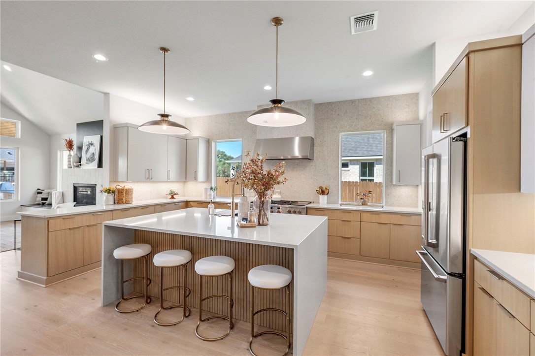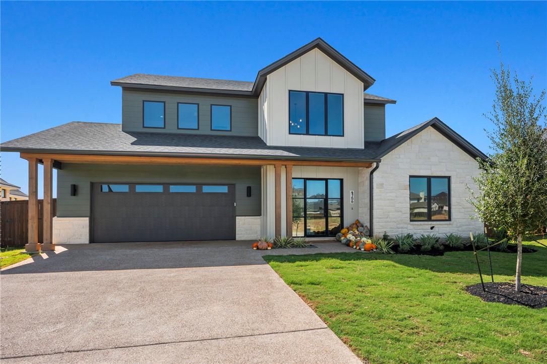 BUILDER OFFERING $10K YOUR WAY! Use it toward closing costs, upgrades, or a rate buy down. Welcome home to your new Lockhart Custom Home featuring a striking metal front door and impressive foyer with 23-foot ceilings. Enjoy modern, cohesive designer finishes including quartz countertops and wood flooring that flows through the common areas and owner’s retreat. The show-stopping kitchen offers modern cabinetry, a working island, 48” GE Café dual fuel range, counter-depth GE Café fridge, stainless Kohler sink, and walk-in pantry. The spacious living room features a cathedral ceiling and gas log fireplace. A half bath provides quick access to the 26-ft covered patio with outdoor kitchen and stained tongue-and-groove ceiling. Downstairs includes two bedrooms and 2.5 baths including the luxurious owner’s suite with dual vanities, soaking tub, walk-in shower, and closet connected to laundry. Upstairs offers two bedrooms, a full bath with dual sinks, game room, and ample attic storage. Energy features include foam insulation, casement windows, 17 SEER Trane heat pump, Aprilaire dehumidifier, tankless water heater, and pre-wiring for surround sound and security. Greens Prairie Reserve amenities include nature trails, stocked ponds, playscapes, pavilion, fiber internet, and community events.