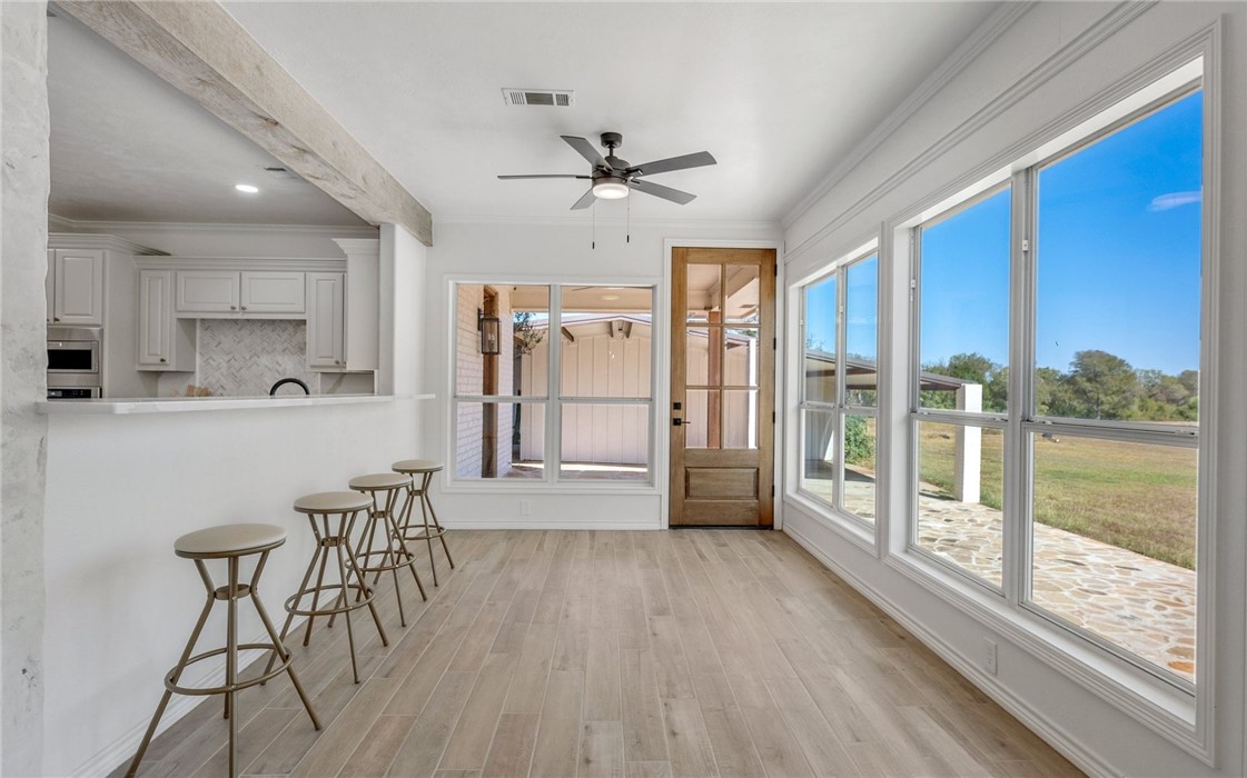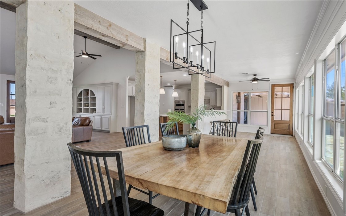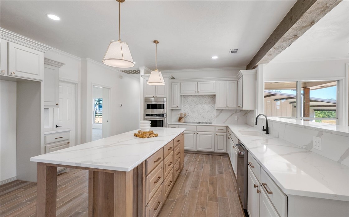 LUXURIOUS LAND with HOME TO MATCH - Professionally designed and meticulously updated in 2024 - Both the interior and exterior of the home will assure you the details have been taken care of with your first step onto the property! The 3 bedroom 2 bath country home is stunning and sits on just over 25 acres in Burleson County - minutes to downtown Caldwell and an easy commute to Austin/Bastrop area and Bryan/College Station. INSIDE: There is elegance with modern country style around every corner. Both the dining room and kitchen enjoy breathtaking views of the pond and rolling wooded acreage behind the home. Appliances, fixtures, stone accents, wood grained tile flooring, and hardware throughout the home complement one another and offer a feeling of elegance with sought after comforts. OUTSIDE: The shop/storage space has been designed to complement the outside of the home with strategically placed designer windows and upgraded board and batten exterior. Also to be appreciated is the large porch that joins the home and shop with the right touches of natural stone and landscaping - a true back yard escape to the country! The acreage offers rolling terrain, a shaded wooded backdrop, two ponds, perimeter fencing and AG valuation in place. This home is the FULL PACKAGE - country elegance with room for everyone!