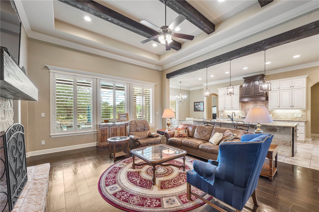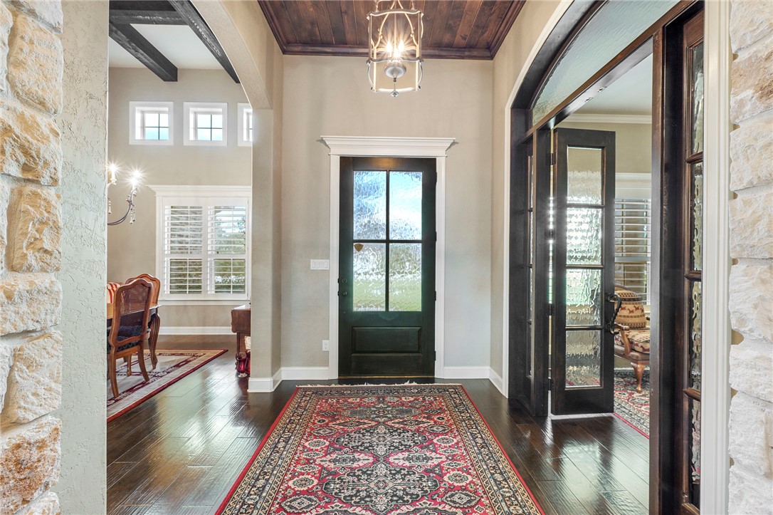 Immaculately maintained and cared for this stunning custom built 4 bedroom 3 bath home sits on a 1+ acre shaded lot in the sought after Williams Creek Community. Stunning finishes include extensive use of stone, custom wood detailing and plantation shutters throughout. The floor plan flows nicely with formal dining and study just off the entry. The living room, kitchen and breakfast area feature raised ceilings with cedar beams, large center island with extensive bar seating, stone fireplace, and oversized windows with views of the beautiful wooded back yard with in ground pool, hot tub, stone waterfall, outdoor kitchen, and cedar pergola for added outdoor entertainment. The master bedroom also enjoys views of the back yard, features an en-suite spa bath with double vanities, large walk-in shower, and a large master closet that flows nicely into the laundry/utility room. The front yard is beautifully landscaped to compliment the home's rustic but elegant exterior finish, the cul-de-sac is quiet with only 7 homes along the drive and the location just minutes from area amenities. This is truly PEACE and QUIET, CONVENIENCE, and LUXURIOUS COMFORTS all in one place - Come home to 4906 Ginger Court!