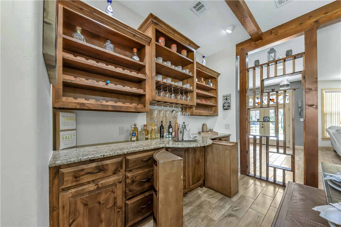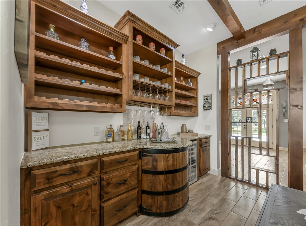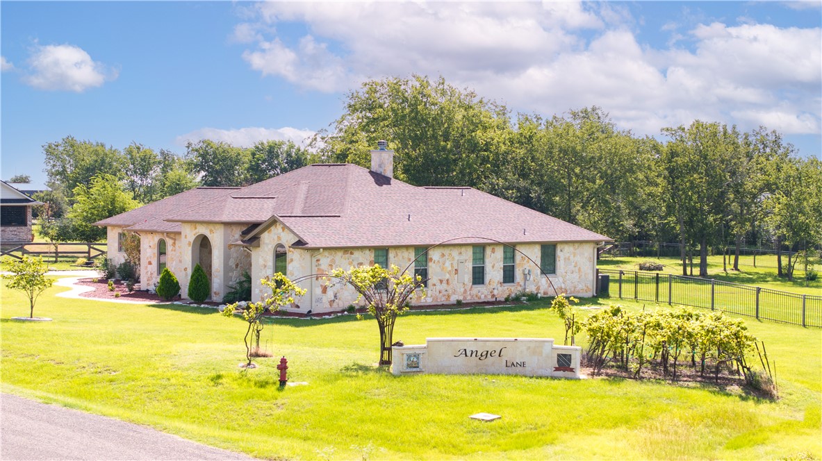 Located at 5000 Angel LN, BRYAN TX 77808, in the inviting community of Messina Hof Estates in Bryan, this single-family residence offers a wonderful opportunity to own 1.29 acres. Built in 2016, this property presents a well-maintained environment ready for its next chapter. With three bedrooms, an office, custom wood cabinets through out and a built in bar, this home provides private retreats for rest and rejuvenation. Each bedroom serves as a personal haven, offering the space to unwind and recharge after a fulfilling day. Imagine the comfort and tranquility found within these restful spaces, designed to promote peaceful sleep and serene mornings. This residence also features 2.5 bathrooms, thoughtfully designed for both functionality and comfort. The bathrooms provide a private space for self-care and relaxation, ensuring a seamless start and end to each day. Envision starting your day in these refreshing spaces, equipped with the essentials to streamline your routine. Don't miss the opportunity of calling this HOME, call to schedule your showing today!