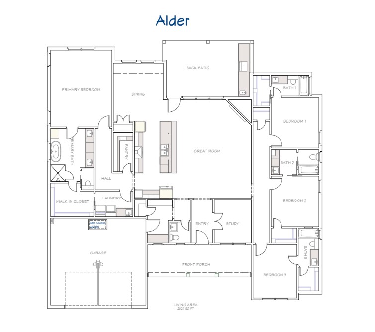 Alder is a stunning 4 bedroom, 4 and a half bathroom with a dedicated office. The oversized front porch invites you into your very own oasis. Off the entry is the office, great for working from home, doing school work, or an extra playroom. Heading through the entry you immediately see the view of your backyard through the large picture-like windows in the living room. This chefs-dream kitchen features everything you need to host the best family gatherings. Use your high-end gas range in style with the custom, real wood decorative vent hood and custom cabinetry. In the spacious 12' island you have additional storage, the sink, dishwasher and a separate trash drawer. You are sure to have plenty of space for all things in your double wall oven. Adjacent to the kitchen is the pantry of your dreams, overflowing with storage and a beverage cooler. Off the garage is the mud room with a large drop zone and more cabinetry. The primary bedroom is a great size with tons of natural light. Style and space is what comes to mind when you see this primary ensuite bathroom. Equipped with a freestanding tub, double vanities, a knee space, full tile walk-in shower, private toilet room and a great sized closet. The closet has direct access to a fantastic laundry room with folding counters and an additional sink. The remaining bedrooms each come with their own private bathroom, you won't be missing a thing! Head outside on to your outdoor kitchen.