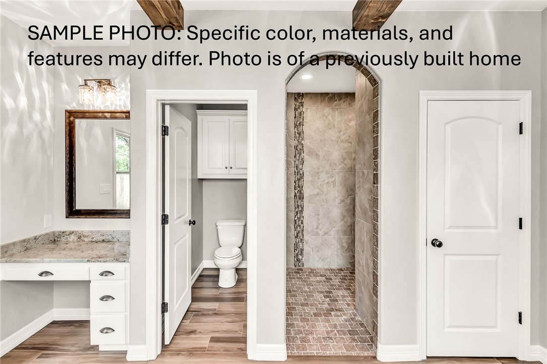 ** PICTURES ARE AN EXAMPLE OF THE SAME FLOOR PLAN BUILT RECENTLY. SELECTIONS WILL DIFFER. ** Welcome to 5105 Greestone Way, this 4 bedroom, 3 bath w/ flex room is being built by Ridgewood Custom Homes and located in Greens Prairie Reserve subdivision in College Station! This home offers a wonderful split bedroom floor plan, oversized living room with fireplace and ceiling beams, a flex space that could be an office, playroom, or whatever fits your needs. The kitchen features a massive island, an abundance of cabinet and counter space, pot filler, stainless steel appliances, double oven, microwave drawer, and more! Other features include granite countertops throughout, large master suite with free standing tub, large walk-in tile shower and walk in closet with built in dresser! Covered back patio with grill and privacy fenced yard!! 16 seer HVAC unit, and tankless gas hot water heater, whole house foam insulation, freeze proof Aquor hose bibs!!