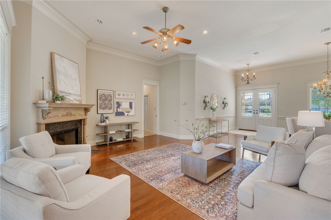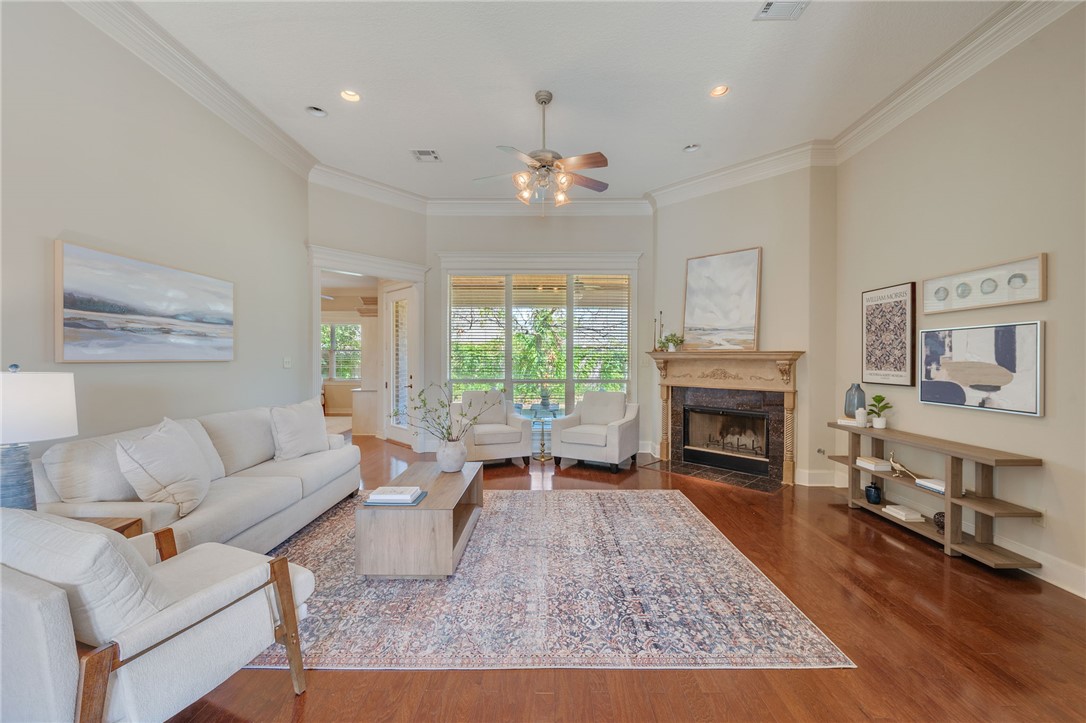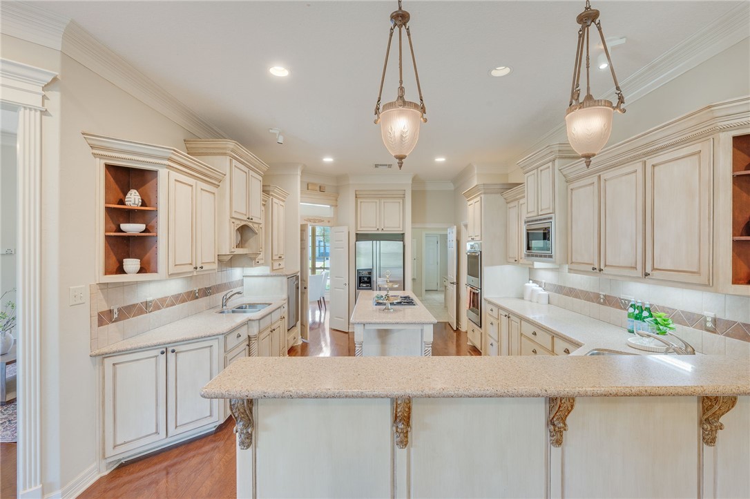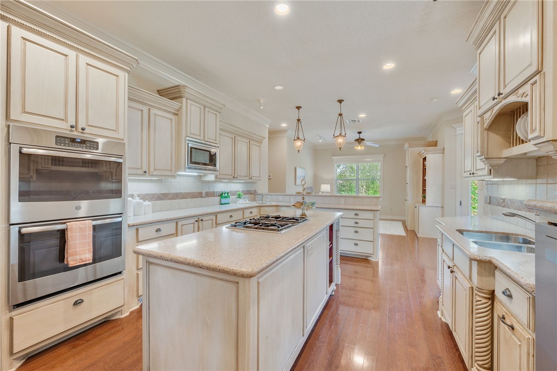 Located in the highly desirable Pebble Creek neighborhood, this sprawling home offers incredible space and versatility with 4 bedrooms, 3.5 bathrooms, dual dining areas, a study, loft, and bonus room. Designed with both everyday living and entertaining in mind, the heart of the home is a well-appointed kitchen featuring a gas range, double ovens, stainless steel appliances (fridge conveys), breakfast bar, walk-in pantry, with custom-built cabinetry in the breakfast nook. The generously sized primary suite is a true retreat with its own private patio, dual closets, jetted tub, separate vanities, storage nook, and a large walk-in shower. Downstairs also includes a dedicated study with built-in cabinetry— that can be used for a home office or craft space—alongside all secondary bedrooms and full bathrooms. Upstairs, you'll find a loft with two walk-in closets, a half bath, and a bonus room complete with additional storage - ideal as a media room, second office, or playroom. Outdoors, enjoy a spacious covered patio set against established landscaping and mature shade trees. Additional highlights include an oversized garage and thoughtful storage throughout. With room for everyone and every activity, this home checks all the boxes for comfort, function, and style.
