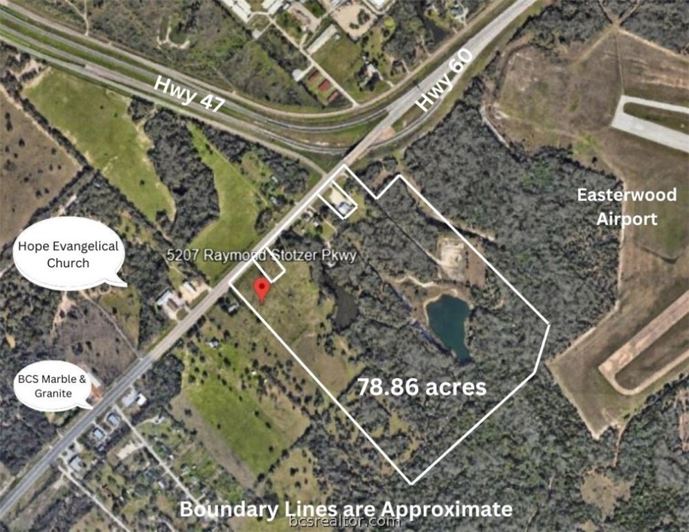 • Directions: Longitude -96.381989, Latitude 30.587519 - Take Hwy 60 East towards Snook. Property will be on your left just north of the airport.
