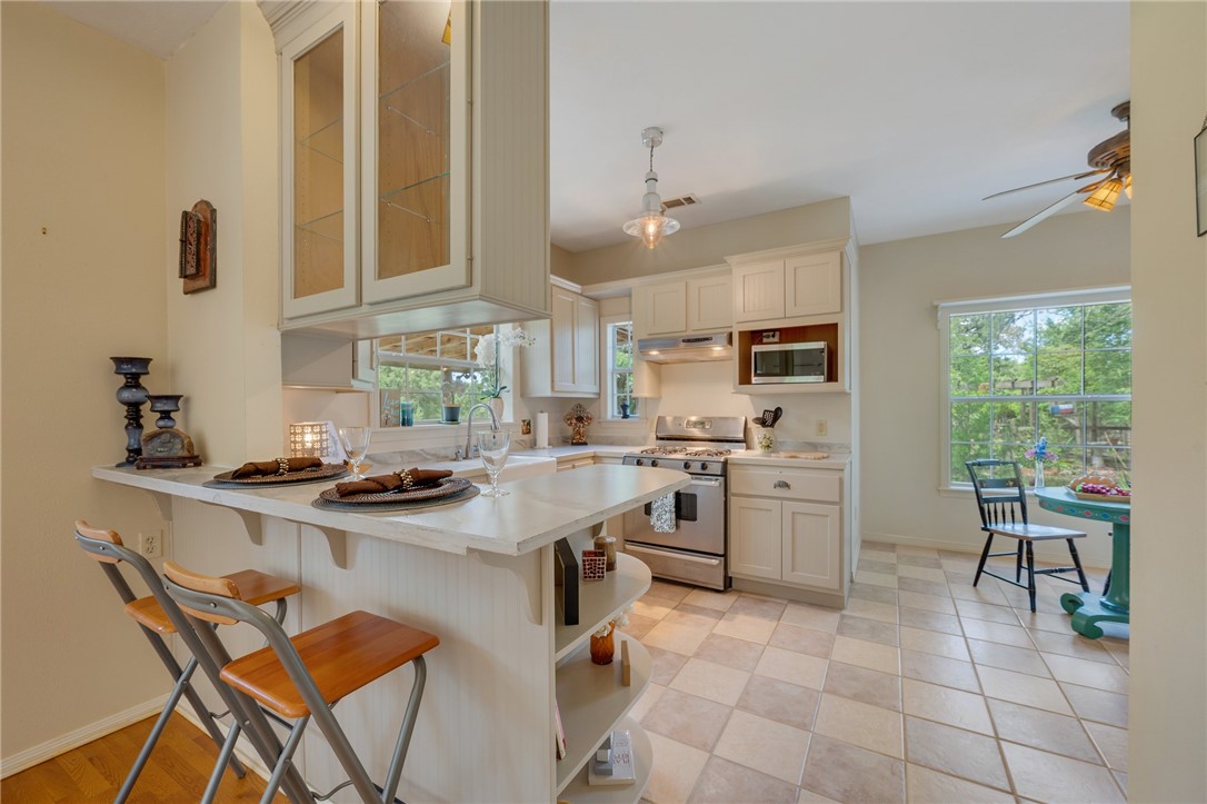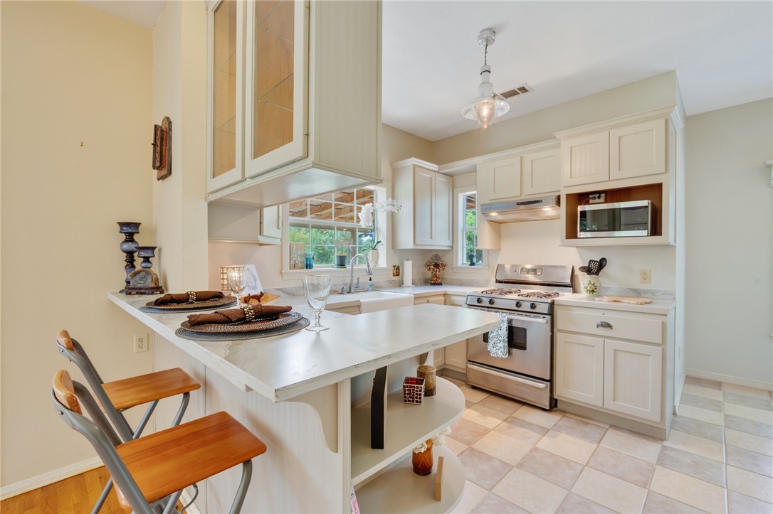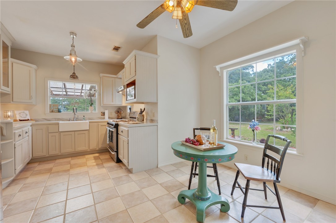 Step into the inviting kitchen, where a farmhouse sink, stainless steel appliances, a cozy breakfast area, and freshly painted cabinets create a space that’s both functional and full of charm. A private study offers a great work-from-home spot or flex room, while the adorable half bath tucked under the stairs adds character and convenience.