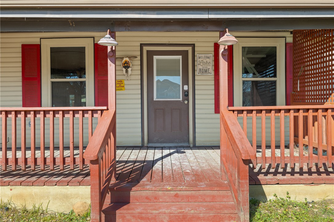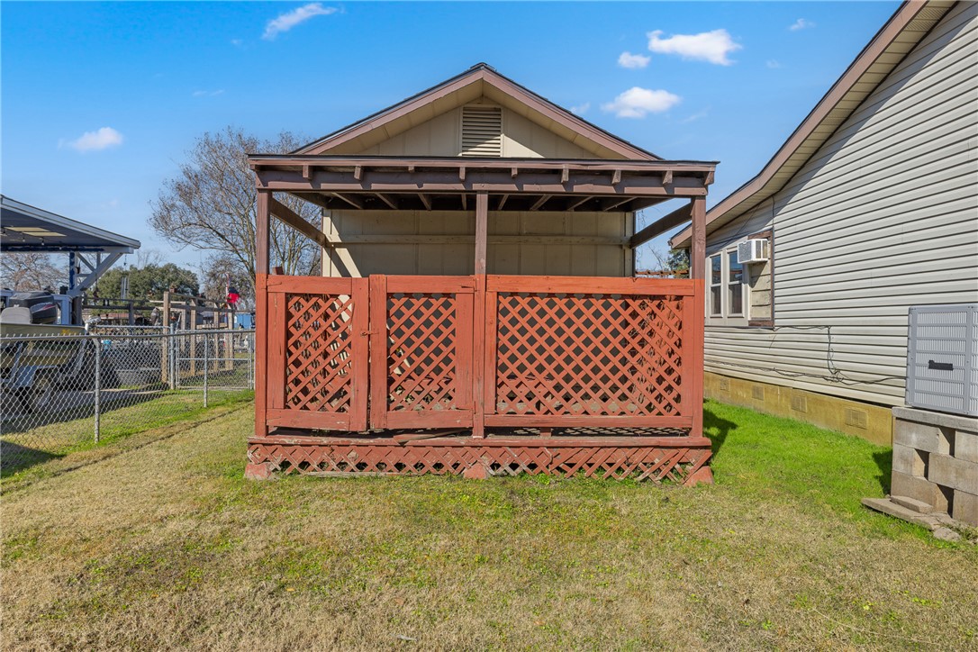 WATERFRONT home will not last long! Partially fenced yard, boathouse with lift, covered fishing pier with live well and pole rack. XL storage building with front deck. Decks galore! Spacious sun room that over looks the lake with a half bath/utility room right inside the back door. And it doesn't end there! This home has a detached, OVER sized, INSULATED 2 car garage and workshop with heat and air, covered front porch, sprinkler system, fruit trees, concrete drive. 50 year roof on all of the structures. Living room has been expanded to include the back porch. The property flooded and the inside has been gutted, the property is ready for the new owner to finish out the inside and make it their custom lake property!