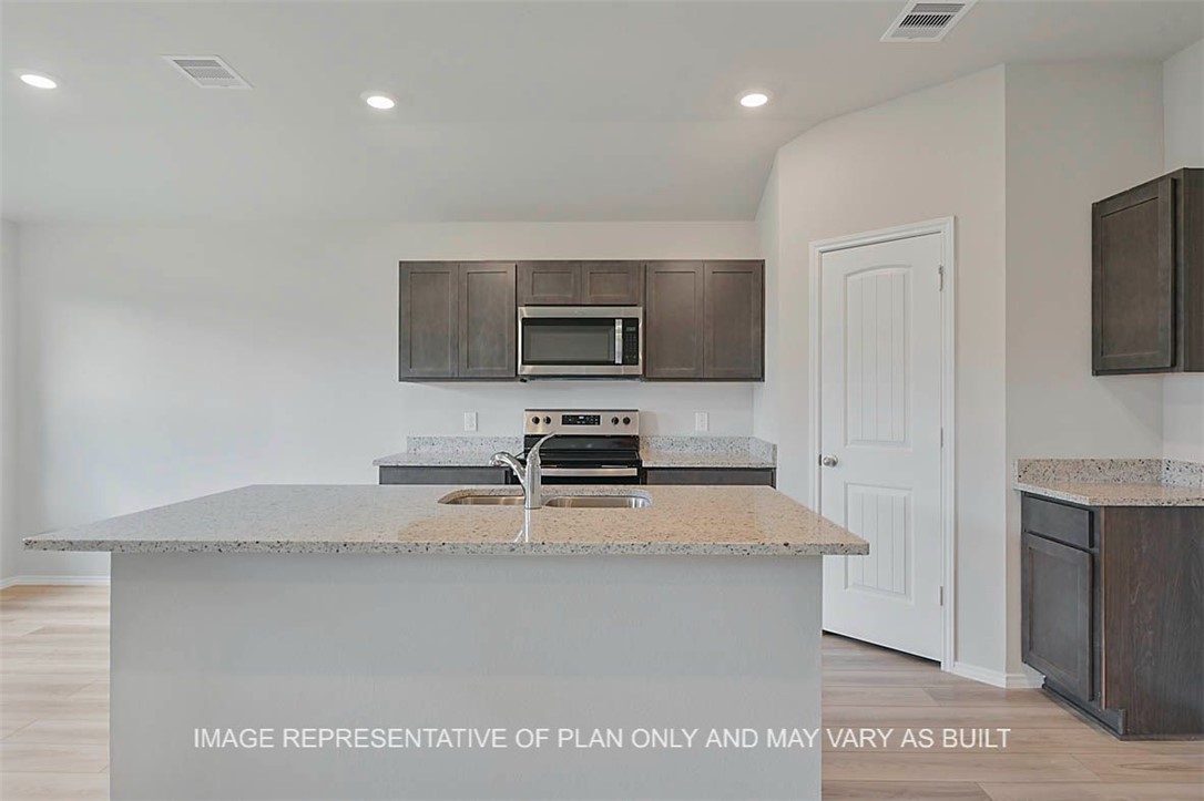 The Lakeway is a single-story, 4-bedroom, 3-bathroom home featuring approximately 2,034 square feet of living space. The large foyer opens to the secondary bedrooms, and bath. Center kitchen includes a breakfast bar and corner pantry. Open concept floor plan boasts spacious combined living room and dining area. The spacious main bedroom, bedroom 1, features an attractive bathroom with walk-in closet. Bedrooms 3 and 4, along with bath 3 are located just off of the Dining Room. The standard covered patio is located off the living room. You’ll enjoy added security in your new D.R. Horton home with our Home is Connected features. Using one central hub that talks to all the devices in your home, you can control the lights, thermostat and locks, all from your cellular device. With D.R. Horton's simple buying process and ten-year limited warranty, there's no reason to wait! (Prices, plans, dimensions, specifications, features, incentives, and availability are subject to change without notice obligation)