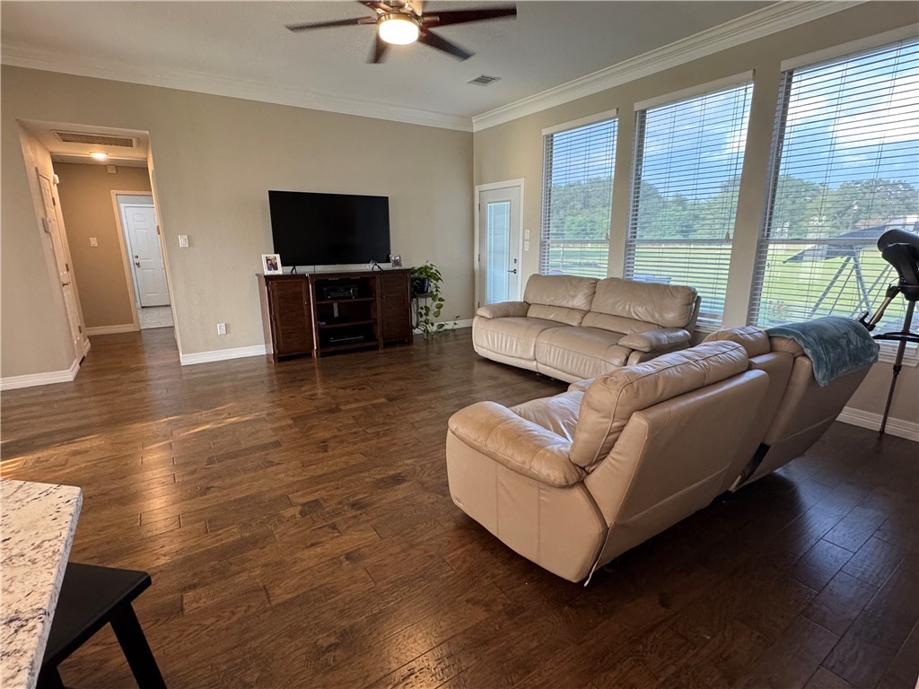 Beautifully updated home on just over 3 acres in desirable Fawn Lake Estates! Extensively updated over the past 4 years, this move-in ready home blends modern style with everyday comfort. Spacious, open floor plan with stunning hardwood floors through the entry, living room, formal dining, and hallways, while 12x24” tile is in the kitchen, bathrooms, and laundry room. The updated kitchen has an abundance of cabinets, a large island with seating, modern flush-mount lighting, and a sleek undermount sink deep enough for your oversized pots. The counter-height bar provides additional seating, perfect for entertaining family and friends. Bathrooms have been tastefully updated. Bedrooms have new carpet (9/25). Other updates include fresh interior and exterior paint, crown molding, stylish lighting, laundry room cabinetry, and new front and back doors. Additional features include a storage building, gutters, energy-efficient solar screens on the back windows, and an expansive concrete pad for additional parking. Ample space for FFA or 4-H animals/projects. Enjoy the best of country living, just minutes from schools, shopping, and dining. Schedule your showing today!
